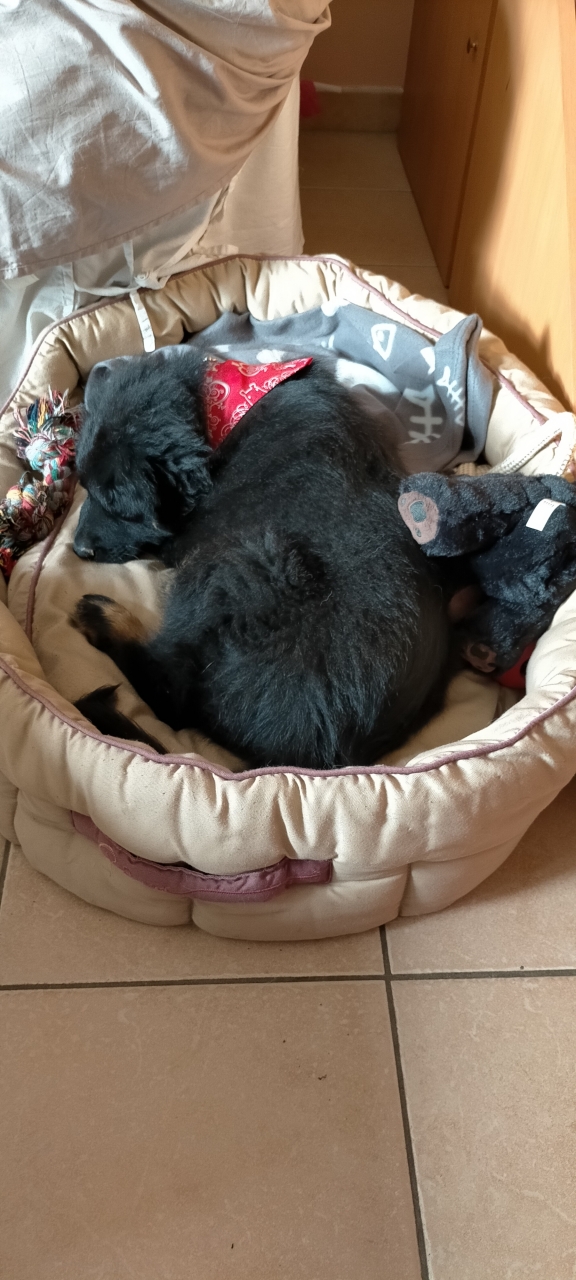 ) et en tout cas connaissant bien la race. Suite a un désistement il ne nous reste plus que Shaggy, le plus grand de la portée, un énorme mâle noir tricolore mais ca tombe bien il est pour assimilee
