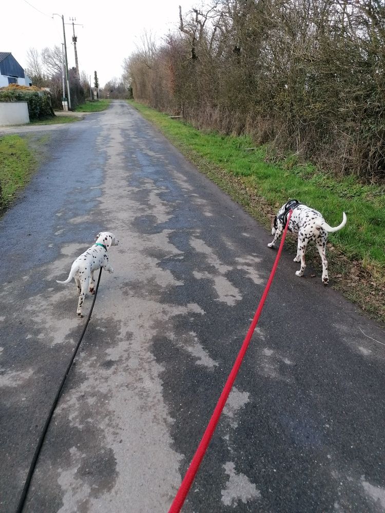 | Dire merci | D'ailleurs c'est quoi le caractère du dalmatien? takhan je ne vais pas parler pour tous les dalmatiens, mais en général, ils sont très très sportif. Il faut que ça bouge. Mon 1er, c'est un chien plein d'énergie, toujours joyeux, toujours partant pour n'importe quelle activité. Il est intelligent, sensible ce qui fait que je l'ai trouvé relativement facile à éduquer. Une gentillesse sans faille pour sa famille et très calin. La gourmandise est son pire défaut. Il boulote tout et n'importe quoi. A 1 an, il s'est retrouvé à 2 doigts d'y passer parce qu'il avait gobé d'un coup une brochette en bois de 15 cm... En vieillissant, il est un peu moins facile. Il supporte moins les chiens inconnus. Il commence à faire un peu d’arthrose et il est moins tolérant. Ceux qu'il a décidé de ne pas aimer, ils ont pas intérêt à venir le chercher (je n'avais pas ce soucis plus jeune). Mais avec lui je casse assez facilement la mauvaise réputation du dalmatien. Pour Sibelle, on verra avec le temps mais le côté énergique, clairement, je suis servie (pire qu'une tornade quand elle se mets en mode jeu). J'ai un gros travail de désensibilisation à faire et de sociabilisation aussi (humain), elle me semble plus trouillarde que je ne l'aurai cru. Ca fait pas encore une semaine qu'elle est à la maison donc je ne tirerai pas de conclusion pour le moment. |