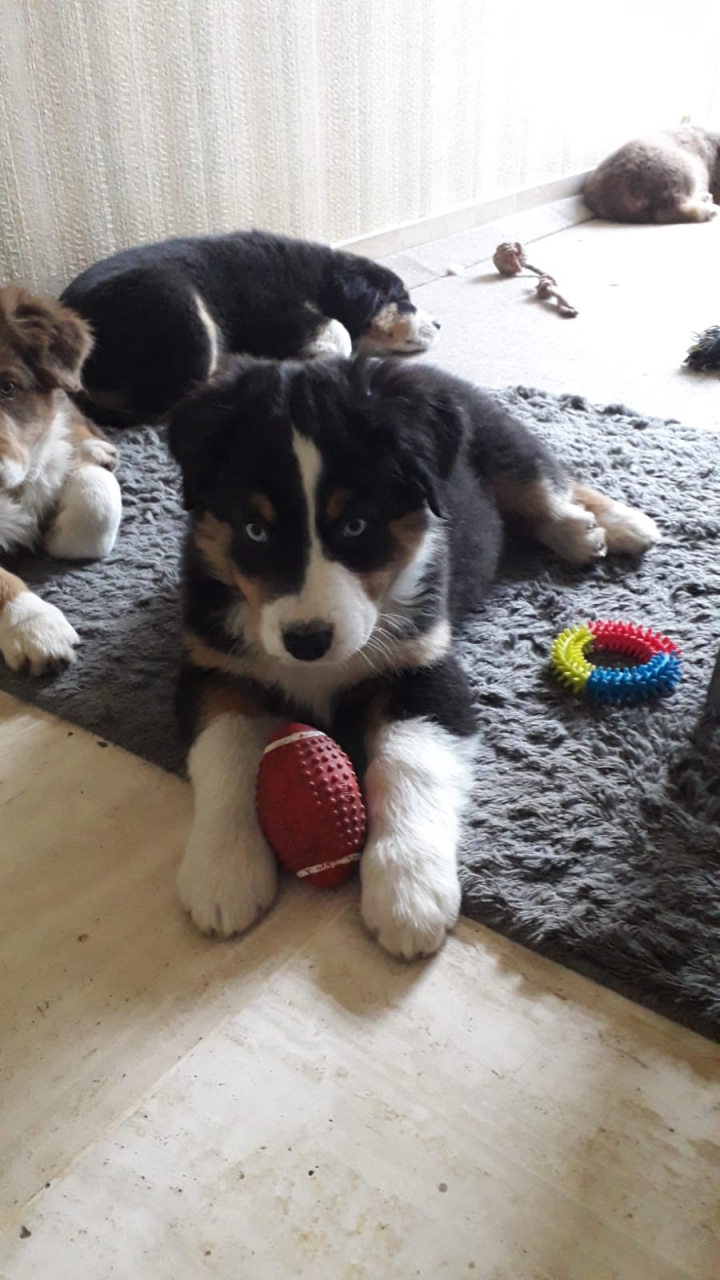 | Dire merci | Désolée pour toi aussi nezlaine .. C'est toujours tellement douloureux . Je t'avoue que je pensais attendre aussi, mais le manque, l'envie et d'un coup le coup de coeur m'ont fait basculer. Tu verras bien quand le moment se présentera. Fluo était un vrai complice, il a eu une place énorme dans ma vie. J'ai repris un berger australien, 12 ans après le premier, je n'avais pas conscience de l'emprise qu'avait eu la mode sur la race . Impressionnant ! Je vous le présenterai plus en détail à son arrivée, question de superstition ! Mais c'est un petit berger australien noir tricolore (je ne voulais pas reprendre un bleu merle, c'est très con, mais j'aurai eu l'impression de chercher la réplique de Fluo, et donc j'aurai pris le risque d'être déçue !) né le 15 novembre. aujourd'hui il a été baptiser Silver, mais on pense le renommer Sunny car il est un petit rayon de soleil dans nos vies. On va voir car mon fils lui n'aime pas ce nom , on se dit qu'on décidera lors de la rencontre. |