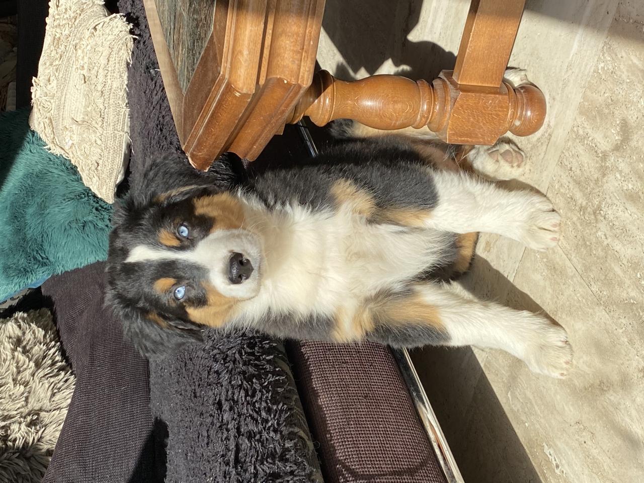 | Dire merci | Berger australien oui, et il fête ses 3 mois aujourd’hui ! Effectivement, il faut qu’il voit des choses ! Avec les gens ça va, hier il m’a accompagné à l’aéroport, il est venu dans le hall, il a été parfait, mais nous n’avons eu l’occasion de ne rencontrer qu’un seul chien pour le moment (au fond d’une cour attaché donc pas forcément dans les meilleures conditions). Après il est arrivé à la maison que samedi, mais oui, on va faire l’école du chiot pour multiplier les expériences car pas d’autres chiens autour de moi |