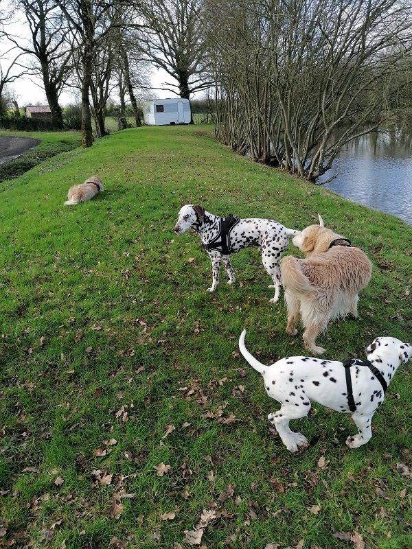 | Dire merci | Je n'interviens jamais dans leurs jeux, j'estime qu'entre canin, ils se débrouillent! Surtout que sans les petites blessures d'Héliot (ça m'embête, trop gentils ce chien), je ne me serais jamais posé de questions, ils stoppent très bien les parties de jeux l'un comme l'autre. Bon il y a une exception, je télétravaille certains jours et quand j'ai des échanges téléphoniques important, pas le choix de tout arrêter entre eux! Ils connaissent aussi bien le "non" et " au panier" donc ça se gère. choupifresh , je compatis pour la rusticité! Bon le dalmatien, je le savais. Je les appelle mes "chiens canapés"! ![]() ![]() J'ai eu l'occasion ce week end de présenter Sibelle a 2 chiens inconnus. Top comportements! Très dans l'observation et l'imitation. ![]() ![]() ![]() (ses yeux... j'espère qu'elle les gardera clairs!) ![]() |