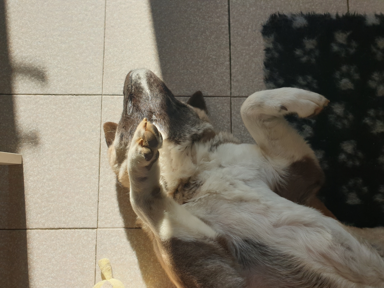 | Dire merci | J'ai la même ici! Toujours les 4 fers en l'air pour dormir!![]() Sinon ici, ça joue toujours autant. Toujours les traces de dents sur les babines et oreilles du vieux, mais bon, c'est qu'il n'a pas l'air si dérangé que ça! (et ça n'empire pas)![]() Bon sinon, ils sont chou non? ![]() (c'est pas gagner de s'assoir élégamment avec Sibelle ) |