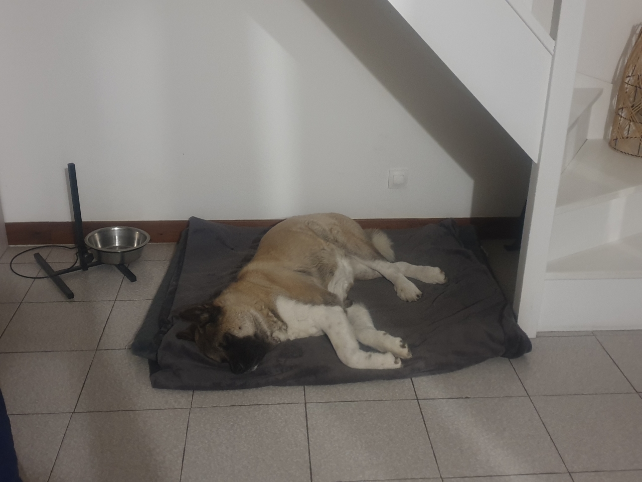 | Dire merci | Je suis bluffée, là encore ton grand stressé s'accorde parfaitement au carrelage. Tu as choisi ton véto pour ça ? Zut comment t'as su.... Heureusement qu'il a pas la taille d'un chihuahua parce que sinon je marcherai dessus ..🤣 Il me fait trop délirer ton toutou graciosio quand il court, on sent qu'il sait pas encore quoi faire de son corps |