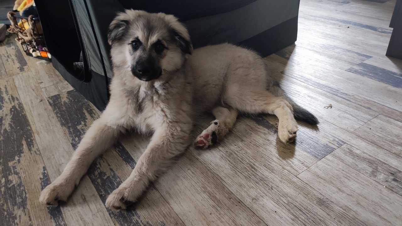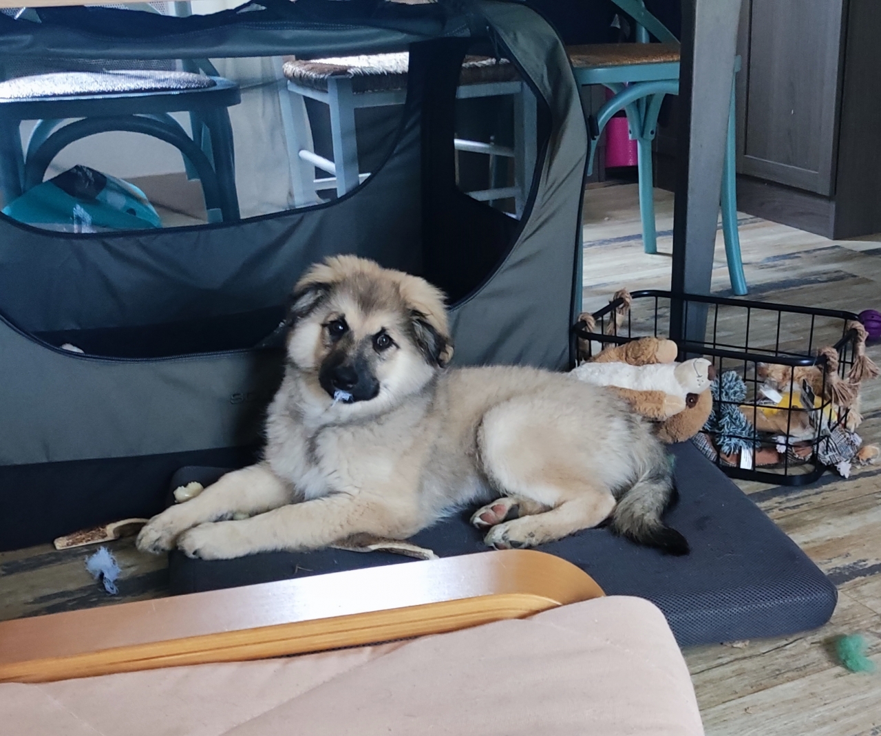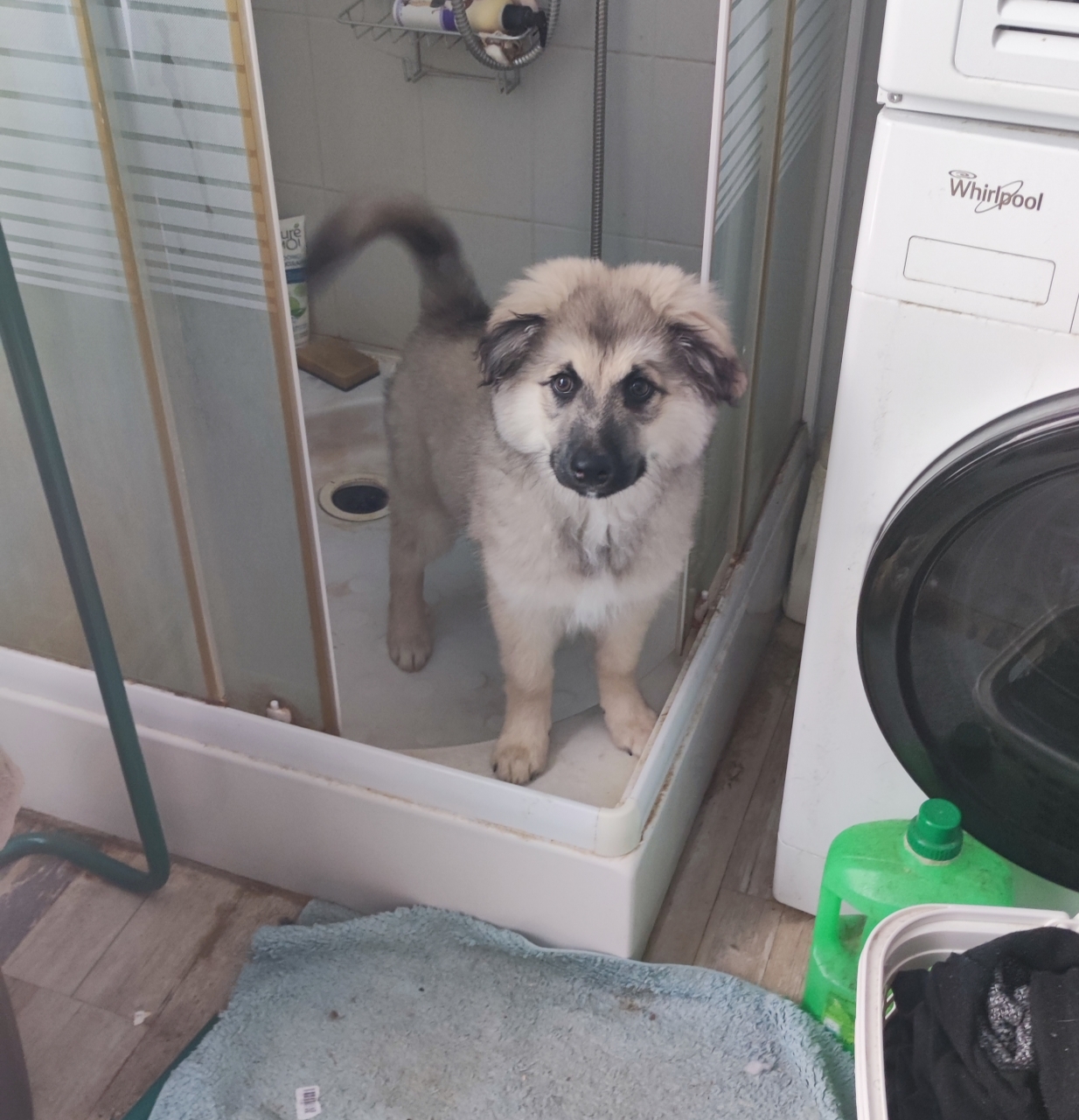 | Dire merci | Émotions du jour pour Arès : ce matin je les nourris, les croquettes sont dans une vieille dépendance. Arès me suit, trifouille un truc dans un coin... une fois, deux fois... je vais voir, une boîte à souris avec de la mort aux rats (quelques grains autour). Direction le veto, vomitif. Au final il n'en avait pas avalé. Chiot patraque toute la matinée, mais je préfère y être allée pour rien ! Il était bien remis cet aprem, on a pu aller se balader normalement |