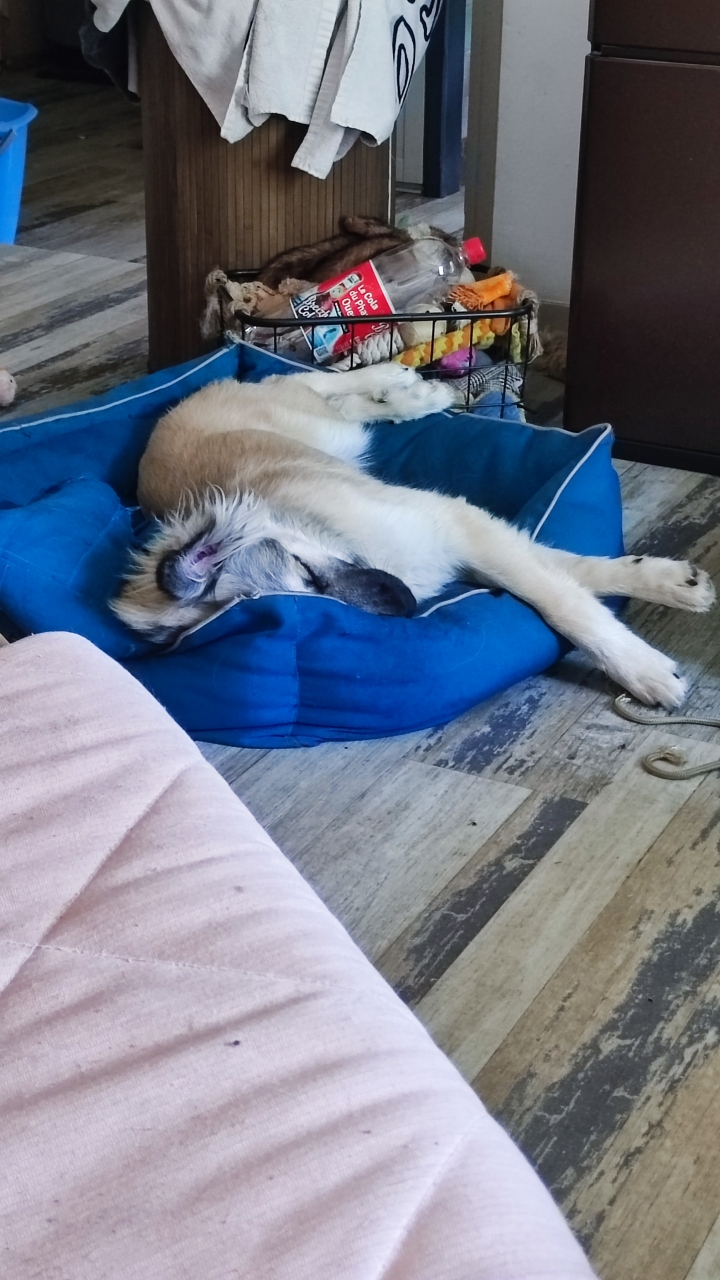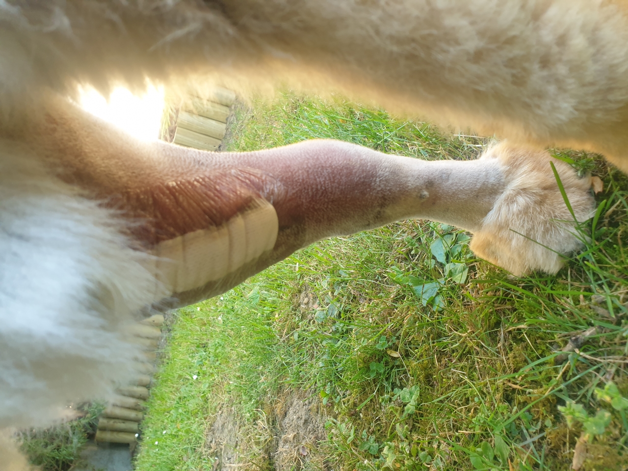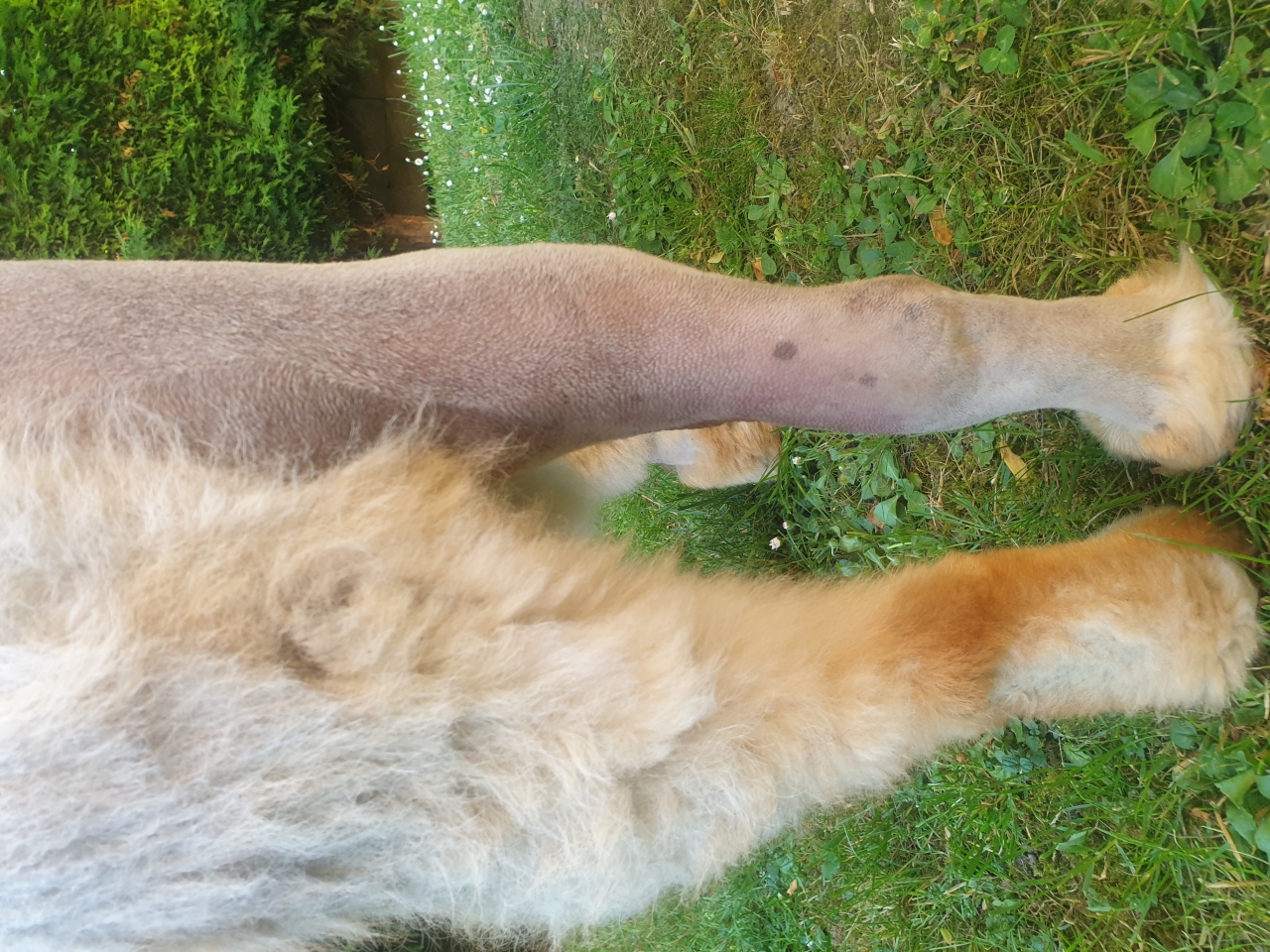 | Dire merci | La patte de poulet de mon petit poilu a J+3, je suis contente, pour le moment ça a beaucoup moins gonflé que la 1ere fois, il marche déjà en prenant appui dessus lors des micros sorties besoins !![]() ![]() |