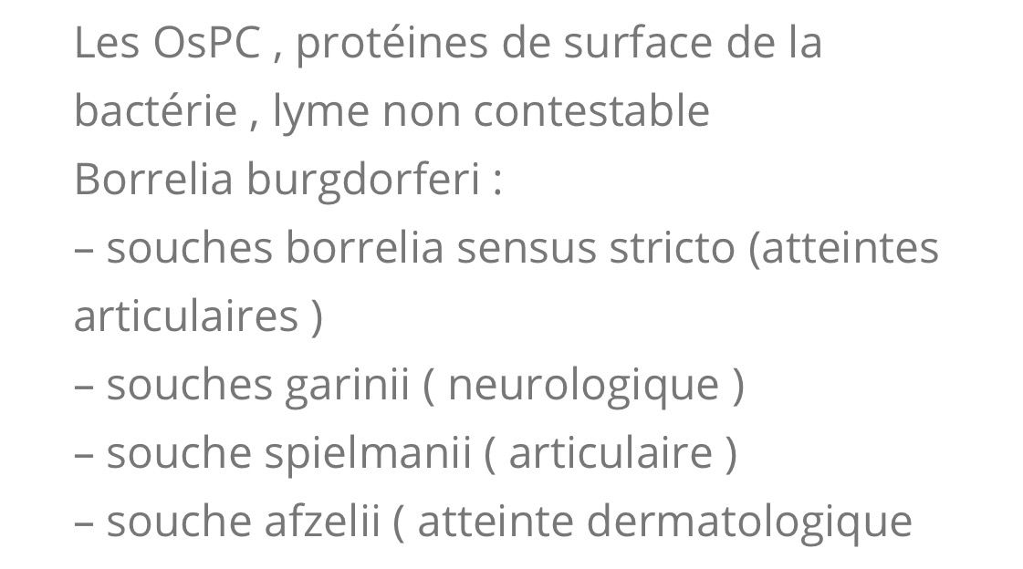 | Dire merci | Les OsPC sont les 4 souches de lyme |