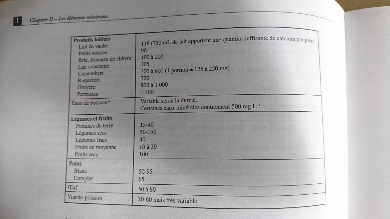 | Dire merci1 | pour les quantités de Ca par aliments et l'assimilation du calcium (utilisation digestive) c'est tiré de "Biochimie des aliments- Diététique du sujet bien-portant" de Frénot et Vierling ![]() ![]() ![]() |