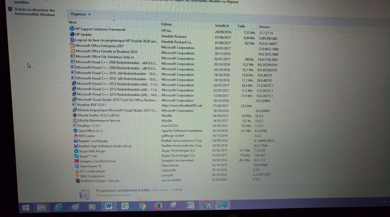 | Dire merci | Ils sont intitulé comment alors ? C'est quelle ligne que je dois supprimer ? Je supprime "microsoft office entreprise 2007" ? Message édité le 20/09/17 à 22:25 |