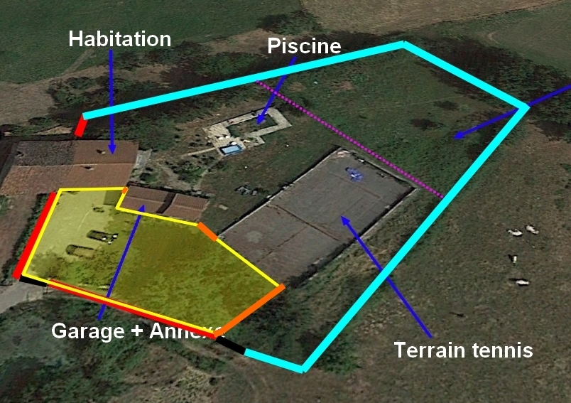 | Dire merci | je comprenais pas ton dernier message du coup !! j'ai je t'avoue... chercher le plus simple... car l'air de rien ton terrain de tennis peut te faire un bon morceau de cloture... et sans me rendre compte vraiment de la taille... je me demandais si l'utilisation du terrain à droite en "jardin" était nécessaire... |