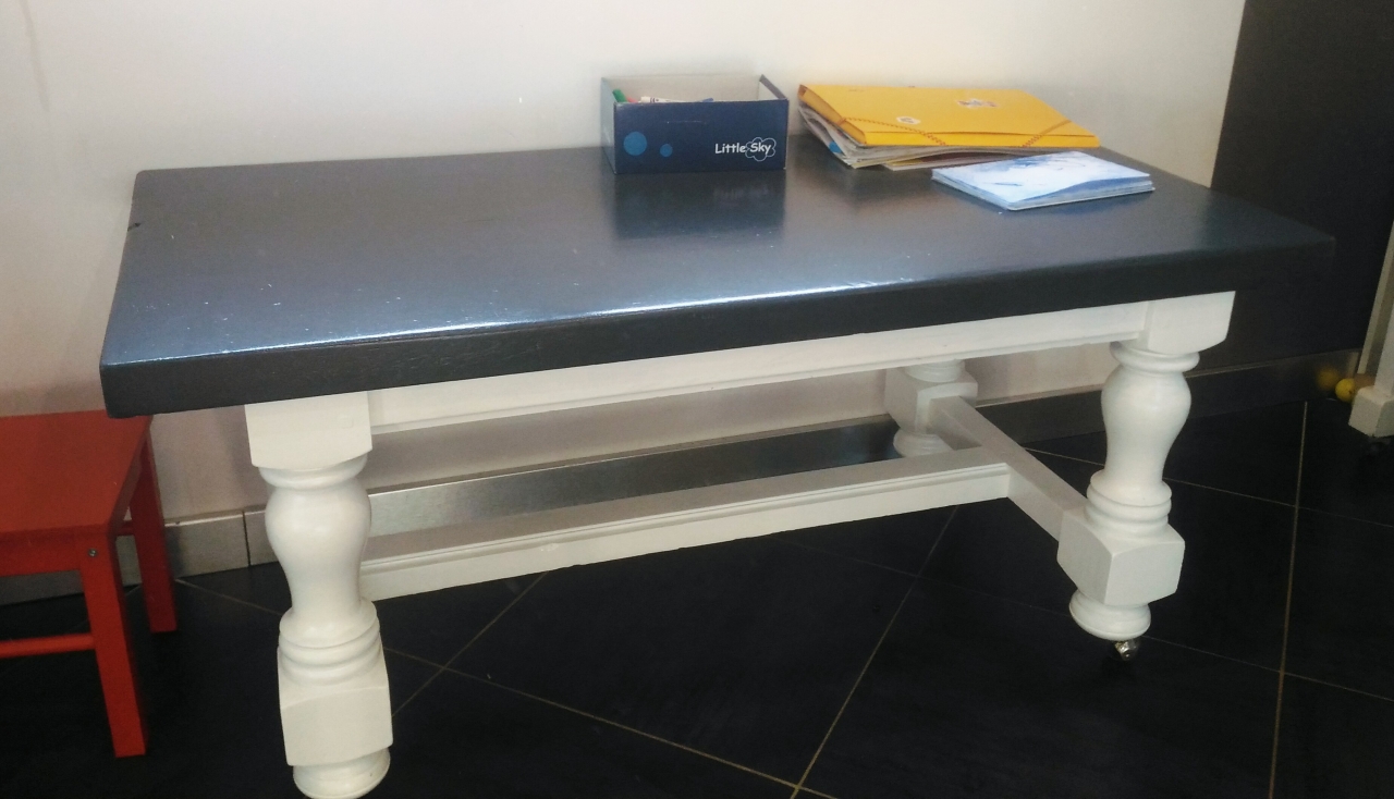 | Dire merci | Ah oui, la table de mamie qui passe à une jolie table plus moderne, c'est chouette ! C'est une peinture classique ou de type ardoise (où on peut écrire à la craie) ? |