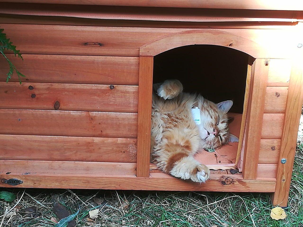| Dire merci | Je serai pas contre, mais mon mec ne veut pas et j'avoue que je suis pas très chaude déjà on dirait un gros renard il aurait vite fait de se faire buter par un chasseur, ensuite il va régulièrement dans les prés alentour où certains tirent les chats qui s'aventurent sur leurs terres au fusil justement, et enfin il ne court pas vite à cause de ses trois pattes et ne se méfie pas des voitures, autant vous dire que sans surveillance on le retrouverait vite fait en crêpe ou pire avec un plomb dans la tronche, et on n'est pas partisans du "il a crevé tôt mais il aura vécu sa vie" |