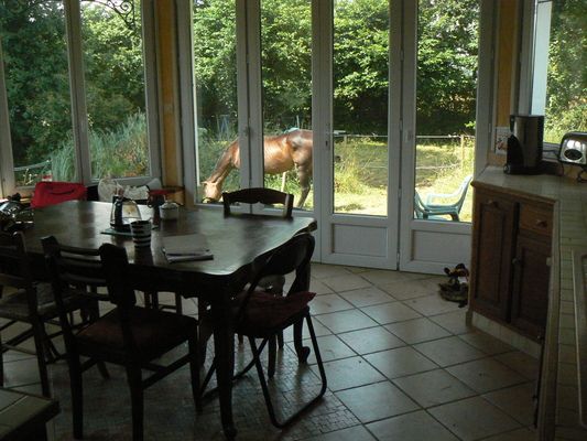 | Dire merci | Je ne sais pas trop si ça va t'avancer beaucoup, mais je peux te parler de ma véranda. C'est pas nous qui l'avons construite, elle a été ajoutée par les précédents proprios. Ils y ont installés la cuisine. C'est une chouette pièce de vie et ça donne sur le terrain, donc, sur les chevaux. Ils ont compris d'ailleurs, Sherpa vient nous faire coucou régulièrement. Alors bien sûr c'est très différent, parce qu'il s'agit d'une maison des années 30. Accessoirement, à la base je ne suis pas fan des vérandas, mes parents en ont construit une, et je trouve que ça dénature complètement leur jolie maison en pierre fin XIXeme. Mais bon, ça fait une pièce lumineuse dans une maison sombre et faut avouer que c'est pas désagréable. mais c'est une pièce peu utilisée en hiver parce qu'un peu froide. La nôtre par contre est visiblement conçue différement. Bon il y a du chauffage dedans pour l'hiver, mais c'est beaucoup moins froid que chez mes parents même sans ça, sans doute mieux isolé j'imagine.Et surtout, le style s'intègre bien à la maison, ce qui n'est pas courant, je trouve, avec une maison un peu ancienne. Mais toi c'est pas ton cas de figure. Pour te montrer... La maison (Bellinda a tondu l'herbe depuis dans le jardin )![]() La véranda-cuisine, c'est donc l'extension à gauche. Vue depuis le pré: ![]() De l'intérieur, vue vers l'entrée du pré (là, Bellinda est dans le jardin, pas dans le pré, mais c'est notre tondeuse... Sherpa a pas le droit, il fait l'andouille avec le salon de jardin quand on le laisse là) ![]() |