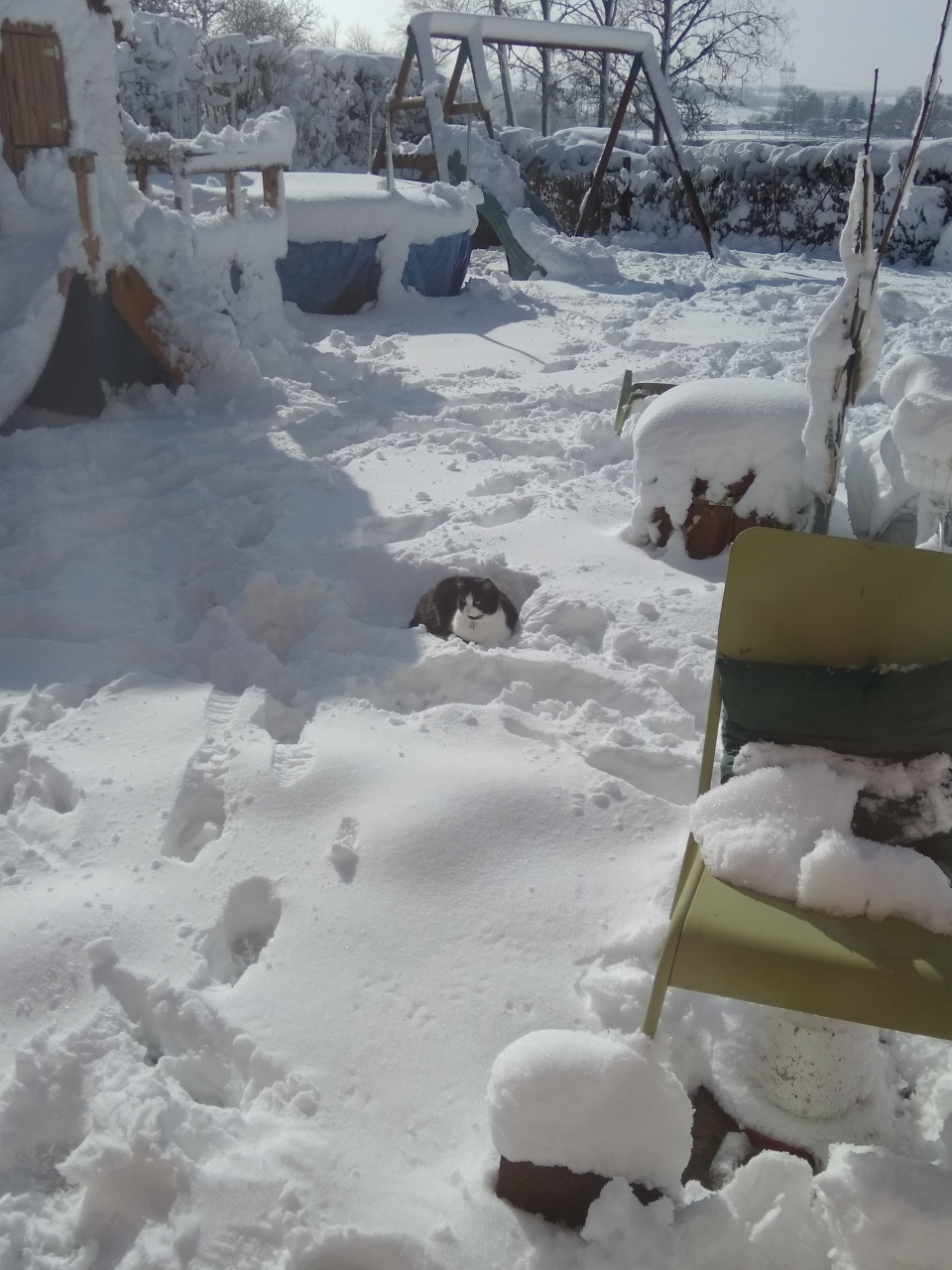 | Dire merci | auj soleil ça va fondre un peu, hier j'ai des très grands arbres tombés dans mon précédent, ma clôture à redresser à un endroit, des congères énormes en haut du pré![]() ![]() On voit l'arbre tombé au fond ![]() Ma chatte s'éclate ![]() |