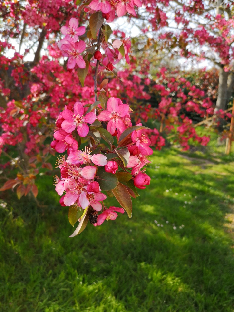 | Dire merci | Je regarderai de plus près mais il ne me semble pas qu'il y ait des épines. Prunier peut être aussi.. Bien que dans mes souvenirs les fruits rouges me semblaient plus petits. J'ai un doute sur la forme des feuilles aussi quand je compare. Par contre les fleurs ça y ressemble beaucoup. Oui les cerisiers du Japon. C'est magnifique ! (mais la par contre mon nez est kapout ) |