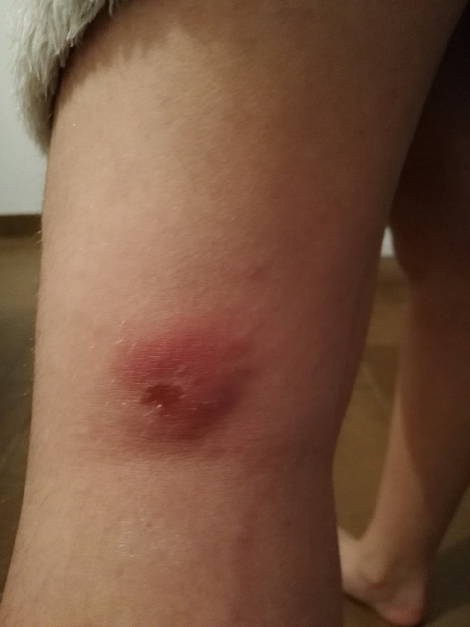 | Dire merci | Si c'est psychosomatique, ça risque d'être compliqué à éradiquer et du coup le magnétiseur peut-être un bon truc à tenter. J'ai fais une photo du truc qu'elle a actuellement derrière le genou. On ne voit pas bien mais c'est très gonflé et ça la gêne pas mal à cet endroit. Celui au poignet est moins gros et est entrain de disparaitre. Elle a celui-ci depuis un peu plus d'une semaine et celui au poignet depuis près d'un mois.![]() |
