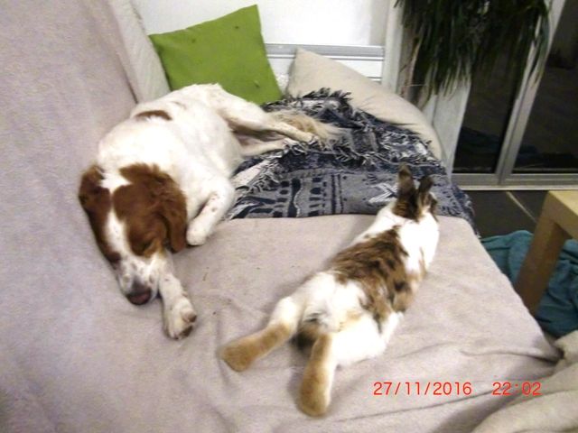 | Dire merci | Moket mon bélier est un vrai chien il serait très bien en appartement , j adore son Caractère. Pour étoffer un peu, Moket' est un belier rex, il a une cage dans laquelle il dort et mange et fait ses besoins, il s sert aussi de la litière des chats. Il vit en liberté (et je pense qu'il va manger mes tongs ce matin.... car j'ai oublié de les ranger :levi ,il ne mange pas les fils (enfin .... normalement), et il se nourrit aussi dans les gamelles des chiens...C'est un sacré phénomène, il se balade dans le jardin parfois jusqu'a minuit, et c'est lui qui fait sa loi avec tous ... chiens et chats du quartier! ![]() ![]() Message édité le 29/04/19 à 10:23 |