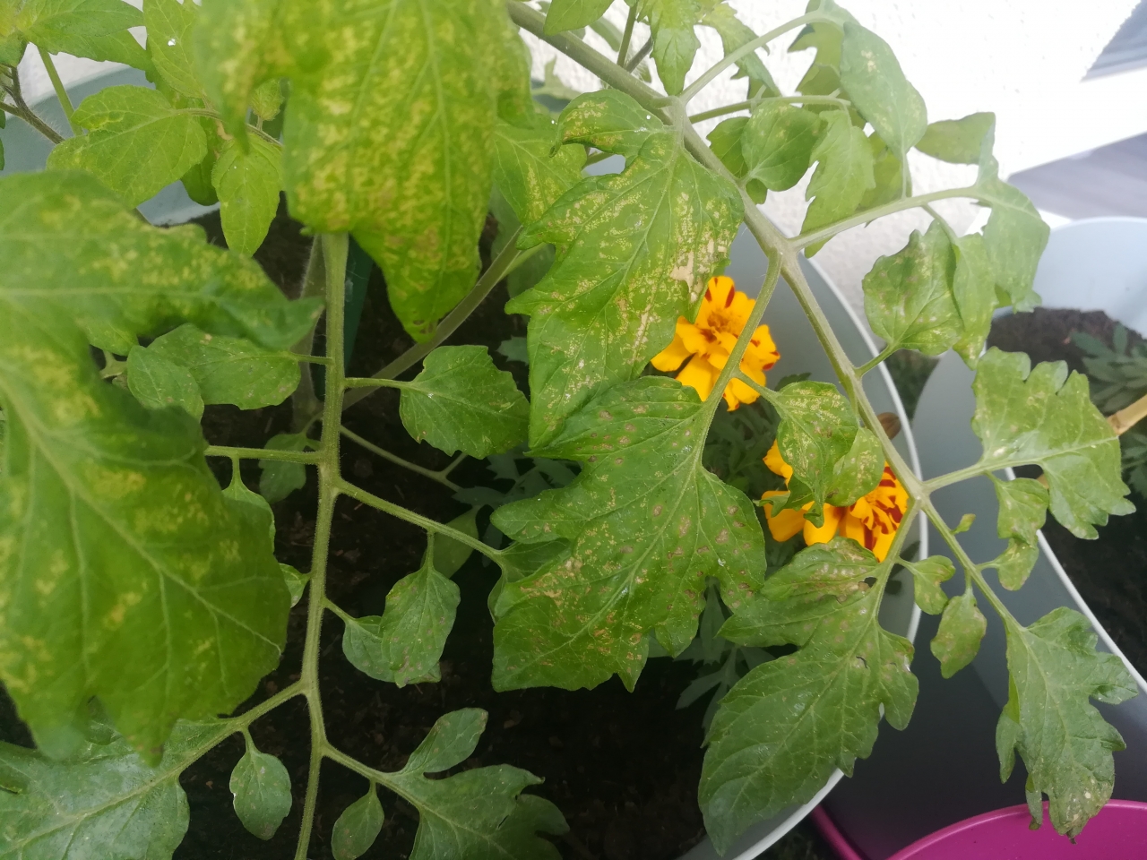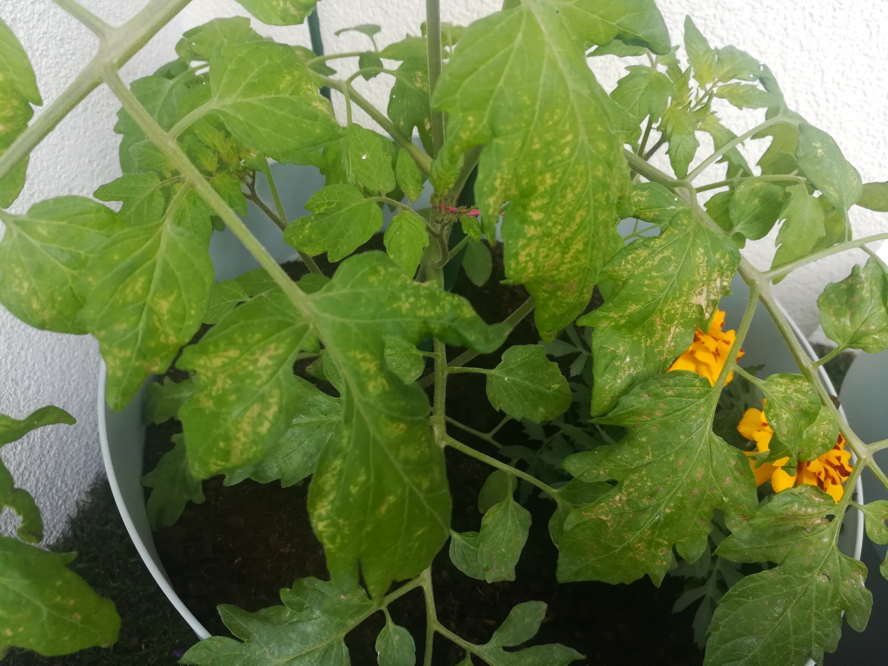 | Dire merci | Non, pas mildiou, mais chlorose. C'est très fréquent sur les cultures en pot. Et cette décoloration des feuilles est assez typique. Plusieurs causes possibles, la plus courante, carence en fer. Mais aussi terre inadaptée, trop compacte, trop arrosée... Et je ne sais pas où tu habites, mais tant que les saints de glace ne sont pas passés, c'est trop tôt pour mettre des tomates dehors sans protection (housse). Pas besoin qu'il gèle pour flinguer des plants de tomate. casimir a raison. |