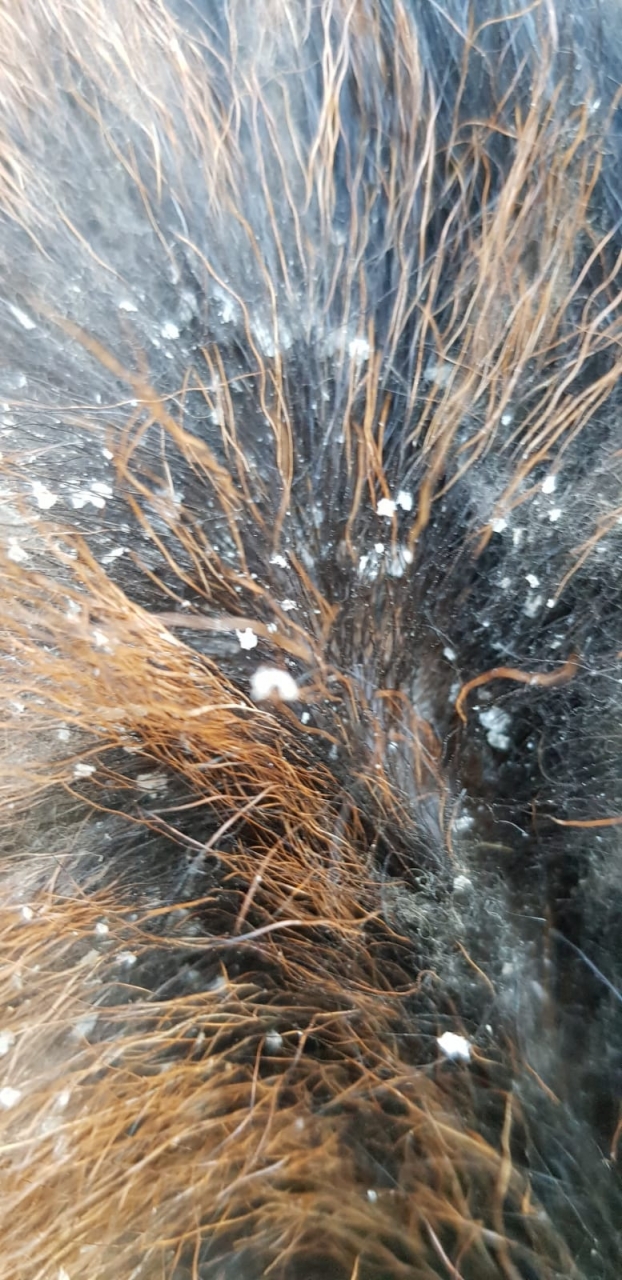 | Dire merci | Bonjour, vu les pellicules, elle a très probablement un parasites ou maladies de peau. Il faut que le véto fasse un prélèvement, l'analyse et traite en conséquence de ce qu'il trouve. Le fait qu'elle maigrisse n'est pas forcément lié à ça (mais ça peut en être la conséquence). Une prise de sang serait utile pour determiner pourquoi elle maigrit, si elle est carence, parasité, etc. voir pour faire urn copro aussi et vermifuger en conséquence. |
