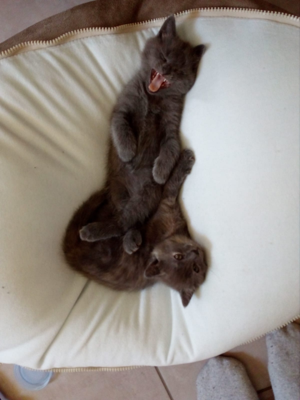 | Dire merci | bon j'ai enfin un peu de temps pour moi alors voilà des nouvelles La famille Chat a enfin des prénoms officiels... La maman Glue, la petiote Pétocharde et le mâle Pantouflard Ça leur va tellement bienLa mère est stérilisée, les trois sont vaccinés, vermifugés, antipucés .... et notre compte en banque est vide ![]() ![]() Pantouflard a eu des poux, c'est traité mais reste les lentes... comment s'en débarrasser? |