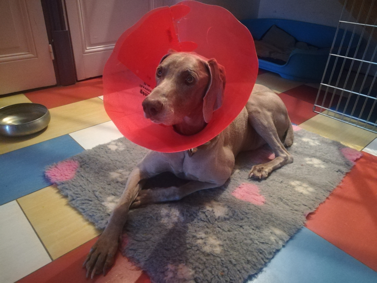 | Dire merci1 | Déjà 10 jours qui se sont écoulés depuis l'opération, il récupère bien mon gros pépère ![]() Encore une bonne semaine et retrait des points, des pansements et bye bye la colerette ! |