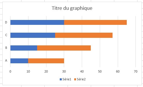 | Dire merci | yann22 moi aussi je suis perdue j'aimerais que ma part A aille de 10 à 20 et ne parte pas de 0 ni ne se cumule de 10 à 30. Comme sur la 1ère image, j'aimerais avoir des barres qui vont d'un point x à un point yassimilee le problème si je fais ça c'est que excel cumule les intervalles, donc ça me fait 10-30 et plus 10-20 et je ne peux pas trop bidouiller manuellement parce que le graphique sera lié à une feuille de calcul et si je change un paramètre dans ma feuille de calcul il faudra que mon graphique se mette aussi à jour |