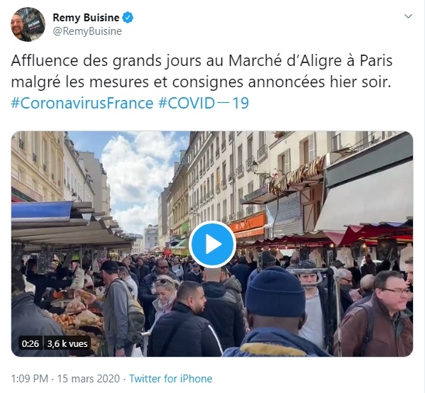 Déconnecté | Une petite vidéo de ce matin avec interview sur le marché d’Aligre. Lien On va être obligé de faire appel aux militaires... |