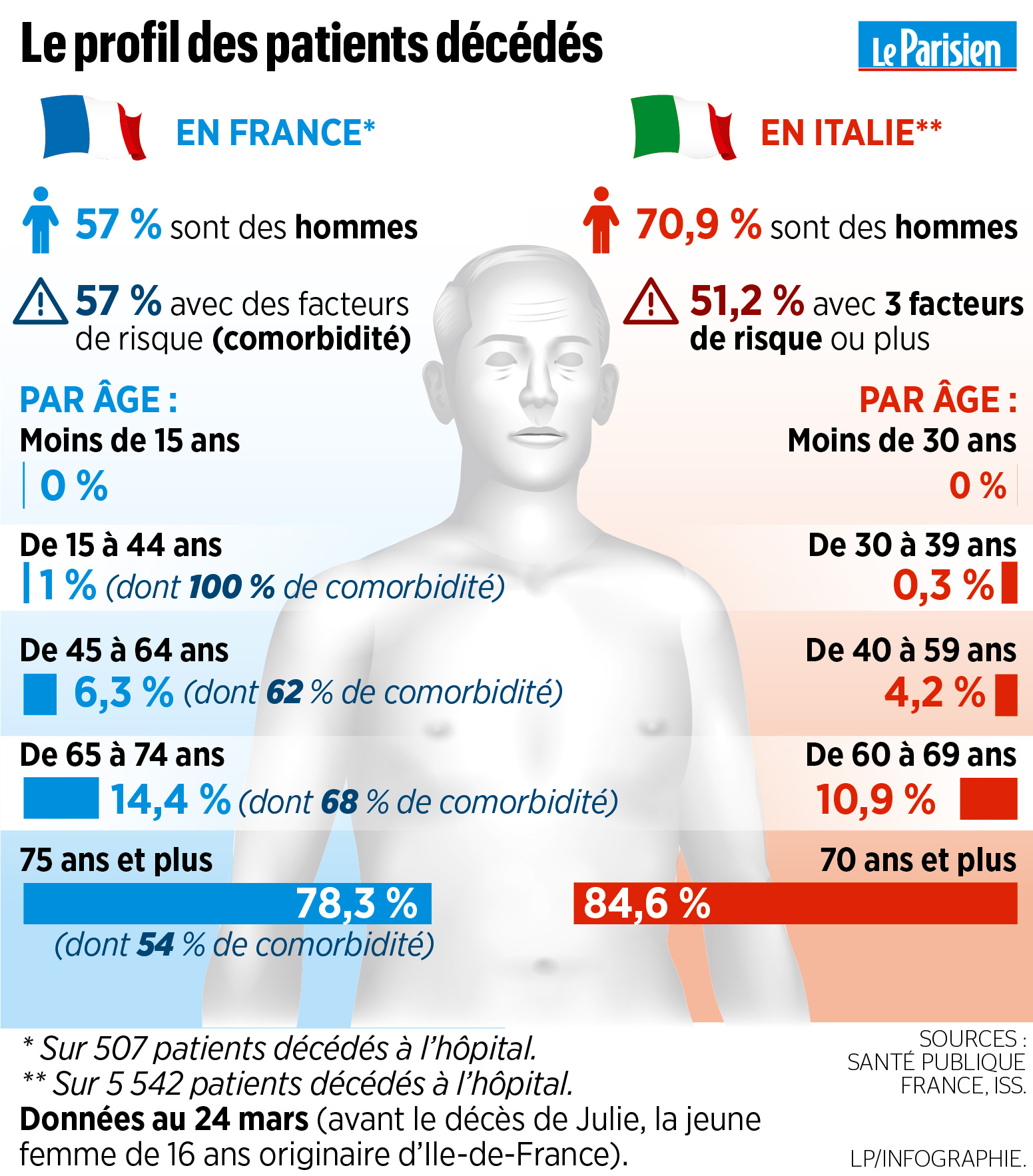 | Dire merci | Un comparatif des profils France Italie, comme hier sexe/tranches d'âge/ comorbidités C'est étonnant ces différences !! |