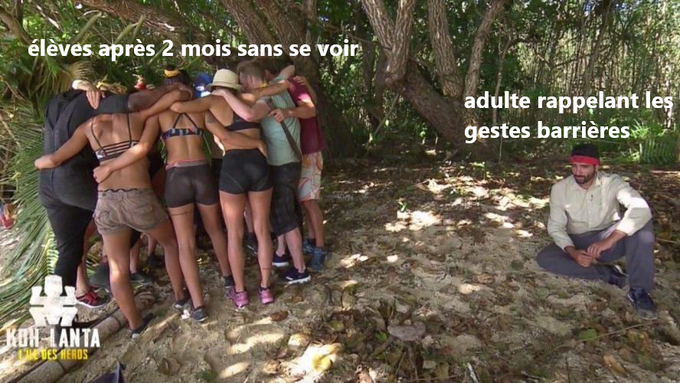 | Dire merci | Le principal pb c’est que nous faisons tout ds l urgence ( toujours aucune directive claire hein? à 15 jours de la rentrée) ; Au lieu de nous recoller à faire garderie devant les éléves,ils auraient mieux fait de nous utiliser , quitte à faire du présentiel pour reflechir en commun à des plans pour septembre Mais ça ça implique aussi que" là haut" on soit eventuellement pret à repenser les programmes,les heures de cours , autant de trucs qui demandent du travail, du vrai! On ne sera pas plus avancés en septembre sauf si le covid disparait Superbe hypothese de travail |