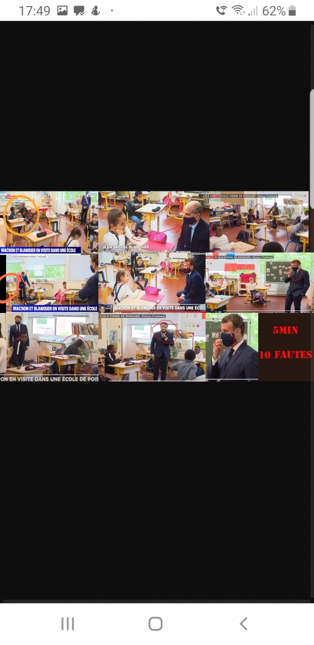 | Dire merci | Ce n'est plus "l'école de la confiance", mais "l'école de la maltraitance".... Allez une dernière pour la fin.... on constate que: -l'éleve est pleinement en confiance - que notre chef suprême transgresse deux gestes barrière: le face à face et il touche son masque je ne sais combien de fois. Lien |