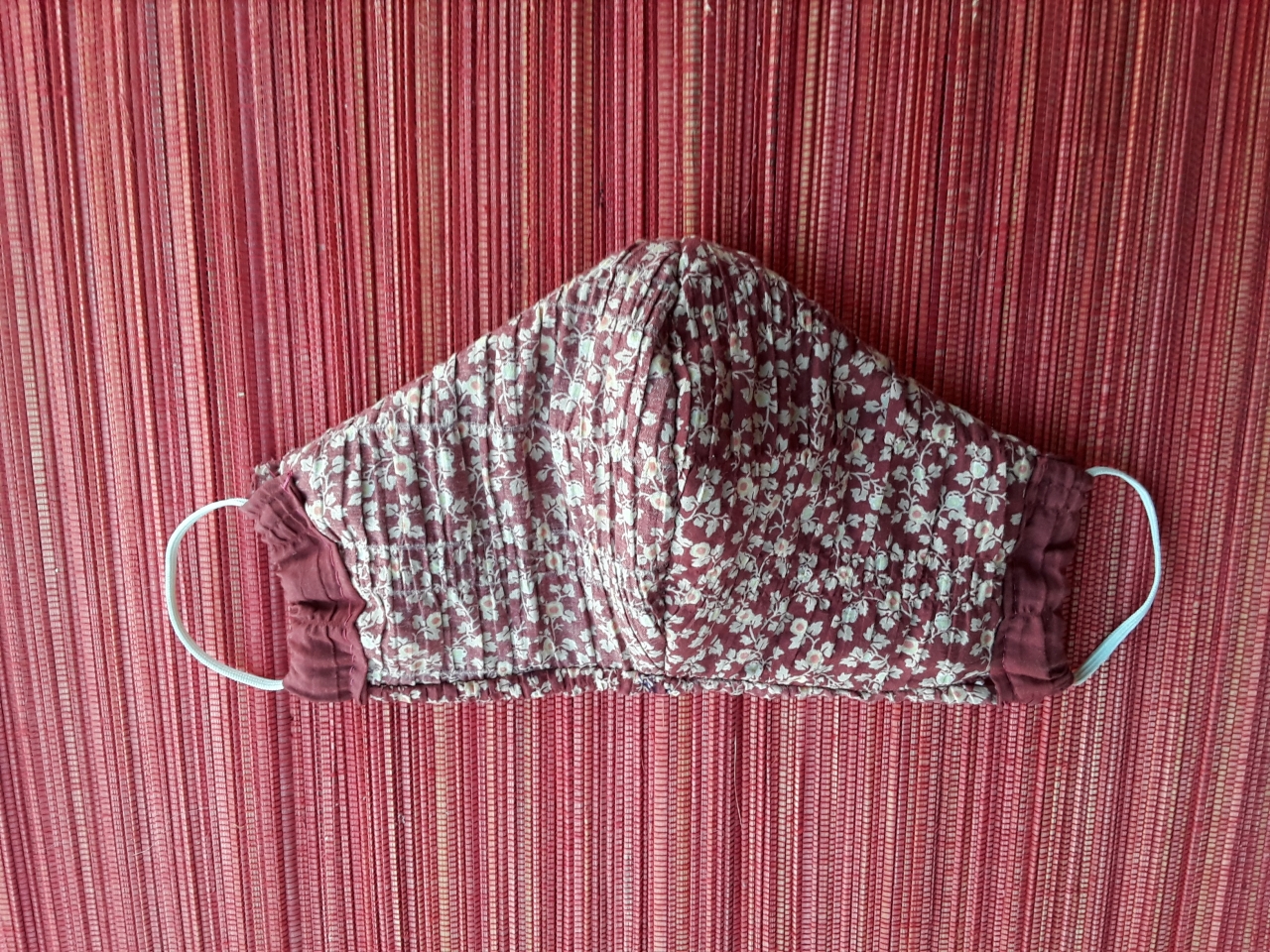 | Dire merci | Dans la couture du haut, en faisant l'ourlet, j'ai glissé un morceau de lien armé (les trucs verts en rouleau pour le jardin, pour attacher les végétaux), genre lien congélation, un peu plus ferme. ça permet de mieux ajuster sur le nez. |