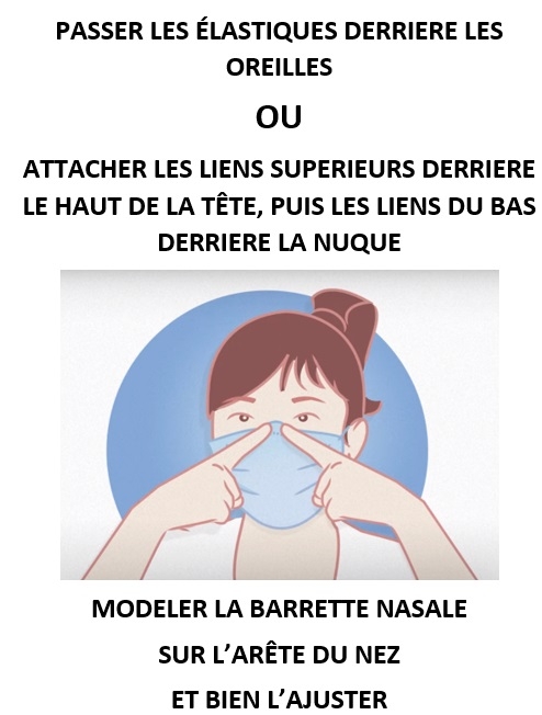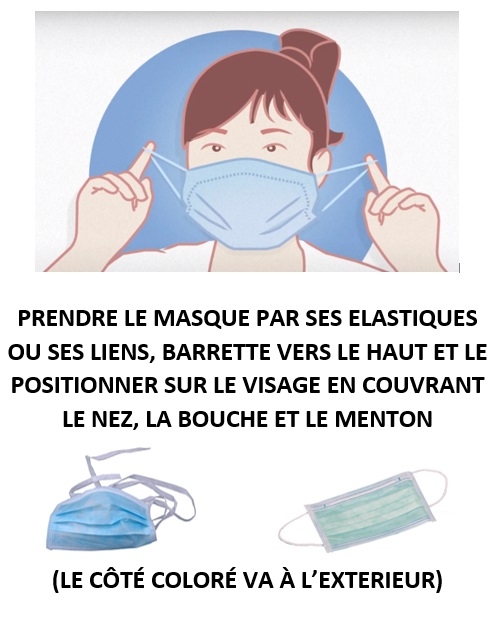 | Dire merci1 | Au boulot, j'ai réalisé un tuto (en prenant des images sur le net) pour expliquer aux gens comment bien mettre leurs masques. Parce que beaucoup ne savent pas les mettre. Je vous mets les infos ici : ![]() ![]() ![]() ![]() ![]() |