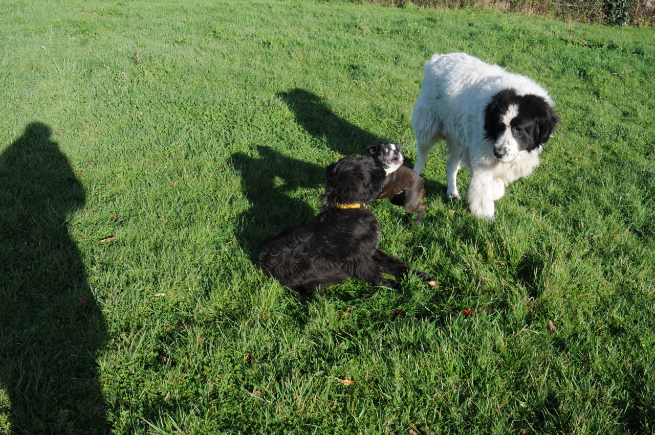 | Dire merci | Oui il est tres endurant. C'est clair que pour Lénine , j'ai eu un gros boulot de socialisation , car nous l'avons récupéré dans un élevage à 4 mois , il etait dans une cage et etait terrifié. Mais j'aime les défis Et notre Grand Landseer l'a pris sous son aile et a aidé à l'éducation et la prise de confiance. ![]() ![]() ![]() ![]() Au debut , il pinçait les gens qui venaient chez nous. Je l'ai emmeneé à des cours d'éducation pendant un an pour qu'il voit d'autres chiens et plein de gens. Maintenant c'est un super gentil chien ,il ne pince plus personne et il tient son role de j'aboie si quelqu'un arrive mais je ne le tue pas Chez nous pas de cloture mais il ne quitte jamais la maison c'est vraiment bien. La , il jouait avec ma boston terrier , et on voit Descartes , pret à intervenir car à des moments il etait brutal avec la petite. Dans ces cas là , Descartes le jetait à terre en grognant. ![]() |