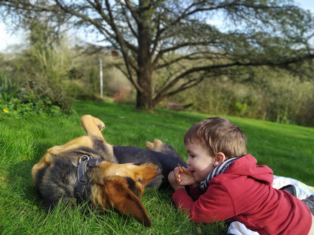 | Dire merci | Sissi nous adore littéralement, est extra avec notre vieux chien, elle le stimule, joue et sait s'arrêter. Pas d'angoisses face à nos départs. Un bon rappel ( bon en mm temps notre croisé chasse et saucisse c'est pas difficile de faire mieux) , très patiente avec notre petit garçon. Sissi quoi... ![]() Une loveuse! Mais... En dehors du cercle familial assez restreint elle reste très,très méfiante ( grosse voix impressionnante et fuite uniquement-aucun réflexe de morsure). Alors bon elle impressionne bcp, donc ça a un côté dissuasif pr notre compagne isolée mais c'est assez fatiguant pr nos amis et famille. Après, il lui arrive aussi d'oublier ds la journée qu'elle adooooore son maître et du coup, elle peut se mettre à aboyer qd il arrive ds la pièce ( homme-barbe-casquette, c'est vraiment de mauvais souvenirs pr elle a priori). |