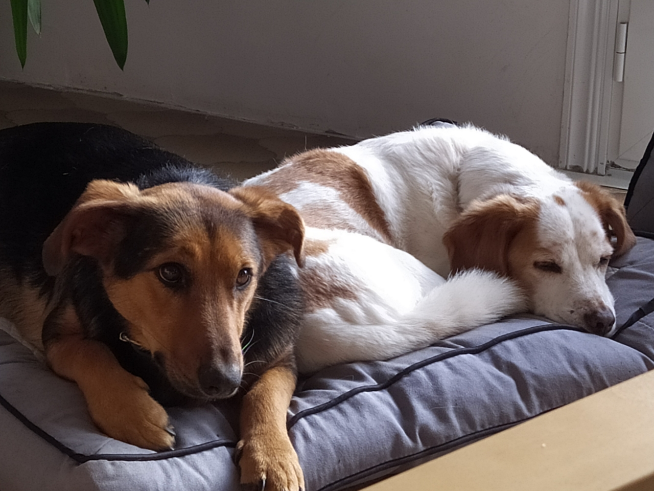 | Dire merci | Mes 2 chiens viennent d'Espagne, par association, je peux dire le nom en mp si il faut. Première, adoptée a 3 mois, il y a 6 ans. Trauma de certains humains elle est encore parfois imprévisible, surtout avec les personnes un peu vieille, elle essaie de passer derrière pour pincer. Pourtant je l'ai eu chiot, et je trouve ça triste qu'à cet âge elle ai déjà pu être trauma. Le 2ieme, adopté a 3 ans il y a 10 mois. Il a été ramasser dans la.rue, et a part une peur au début de se prendre les bâtons sur la tête, il a pas été trauma de l'humain. Il adore les câlins. Si je le lâche, il part parfois sur une piste, mais revient toujours vers moi, mais parfois 20 min après... |