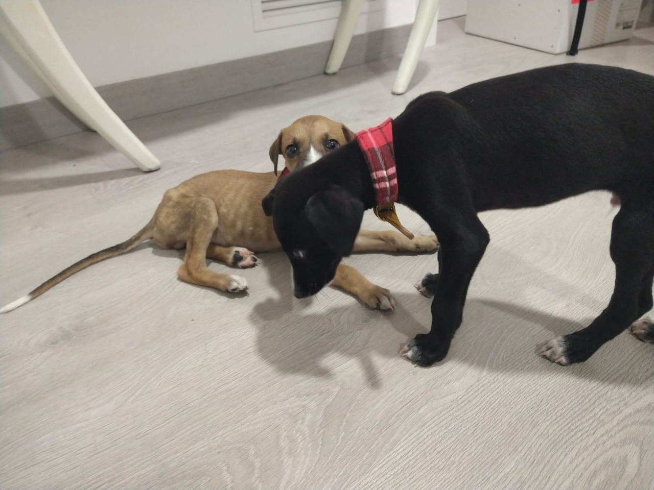 | Dire merci | Il arrive dans un mois environ, si tout va bien (sous-entendu si les frontières restent ouvertes). Il ne peut pas voyager avant à cause du délai du vaccin antirabique. Je viens d'apprendre que sa courageuse maman, Paula, vient d'être adoptée en Italie et partira le 4 septembre. Pour le petiot qui a eu la patte mangée, il a été opéré pour faire une amputation propre et il est en famille d'accueil pour l'instant. |