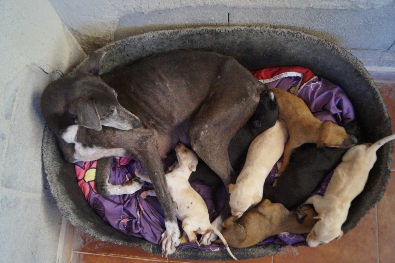 | Dire merci1 | Donc au départ on m'avait parlé d'une petite galga de 4 mois, Abi, qui a chopé une parvovirose et s'en est sortie. Mais au téléphone, la dame de l'asso a commencé par me dire "Abi est adoptée, elle part en Allemagne". Mon coeur est descendu dans mes chaussettes. Elle a continué en disant "par contre le refuge m'a parlé de 3 bébés de 2 mois et demi, je vous envoie les photos et vous choisissez celui que vous voulez". Elle m'envoie les photos... Je lui dis "comment je suis censée choisir?? Ils sont tous plus mignons les uns que les autres" Il y a deux petits beiges et un noir. Elle me dit que si ça peut m'aider à choisir, les gens n'adoptent jamais les mâles noirs, c'est les plus mal lottis. Va pour le noir alors. Il s'appelle comment? "Pipo". Ah. Bonjour Pipo! ![]() ![]() ![]() On pensait donc que Pipo était né au refuge, et j'ai demandé s'il était possible d'avoir plus d'infos sur sa mère. Quelques heures plus tard je reçois ce message: "Bonsoir L'histoire de Paula et ses bébés Paula a été sauvée dans un petit village à 80 kms d'Albacete où se trouve le refuge Arca de Noé. L'équipe de sauvetage était partie avec une cage trappe pour sauver une galga nommée Flamenca qui avait été vue dans les champs pendant plusieurs semaines. Pendant qu'ils préparaient la cage Paula est sortie de la nature et est venue leur demander à manger. Ils ont cru que c'était Flamenca.. mais en comparant avec leur photos ils ont vu que ce n'était pas elle. Comme elle avait les lamelles pleines de lait ils ont commencé a chercher les bébés, mais Paula les a immédiatement emmenés vers son nid. Il y avait 7 bébés. Il manquait une patte à l'un d'eux. Une bénévole est repartie au refuge préparer une pièce pour la petite famille. Paula dès le début était très douce et a permis à la bénévole de toucher ses bébés. Elle semblait heureuse de sa pièce. Les bébés les plus faibles ont été placés le lendemain en famille d'accueil. Et les autres sont restés avec leur maman plusieurs semaines. Jusqu'à ce que le refuge trouve des familles d'accueil pour tous." ![]() Passé l'émerveillement de voir la photo de Paula avec tous ses bébés, je regarde de plus près. Et je comprends. Je comprends que cette petite phrase, "il manquait une patte à l'un deux", ne veut pas du tout dire ce que mon cerveau avait décidé d'interpréter. Et de l'émerveillement, je suis passée à l'horreur. On ne saura jamais ce qui s'est passé, ni comment cette pauvre chienne s'est retrouvée là avec ses 7 chiots. Mais là tout de suite, si je pouvais, j'adopterais les 8, maman comprise. Je ne peux pas, alors commençons par un. Par le magnifique petit Pipo. |