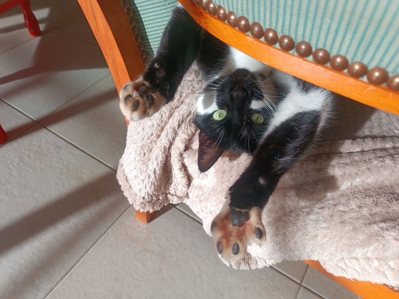 | Dire merci | monreve j'adore la photo sous la chaise ! pour la caisse si tu vaporises du feliway dedans ? Les miennes n'aiment pas y aller, mais une fois dedans ça va elles ne disent rien, ou alors miaulement plaintifs mais pas de blessure |