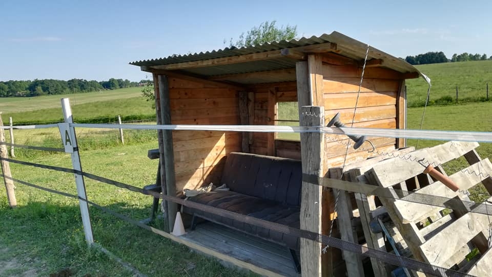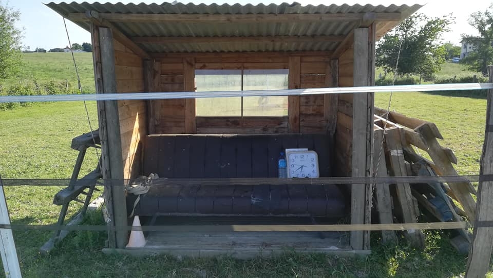 | Dire merci | L'abri de carrière avec vue sur la carrière et le parc d'obstacles entièrement fait par mes petites mains ![]() ![]() |