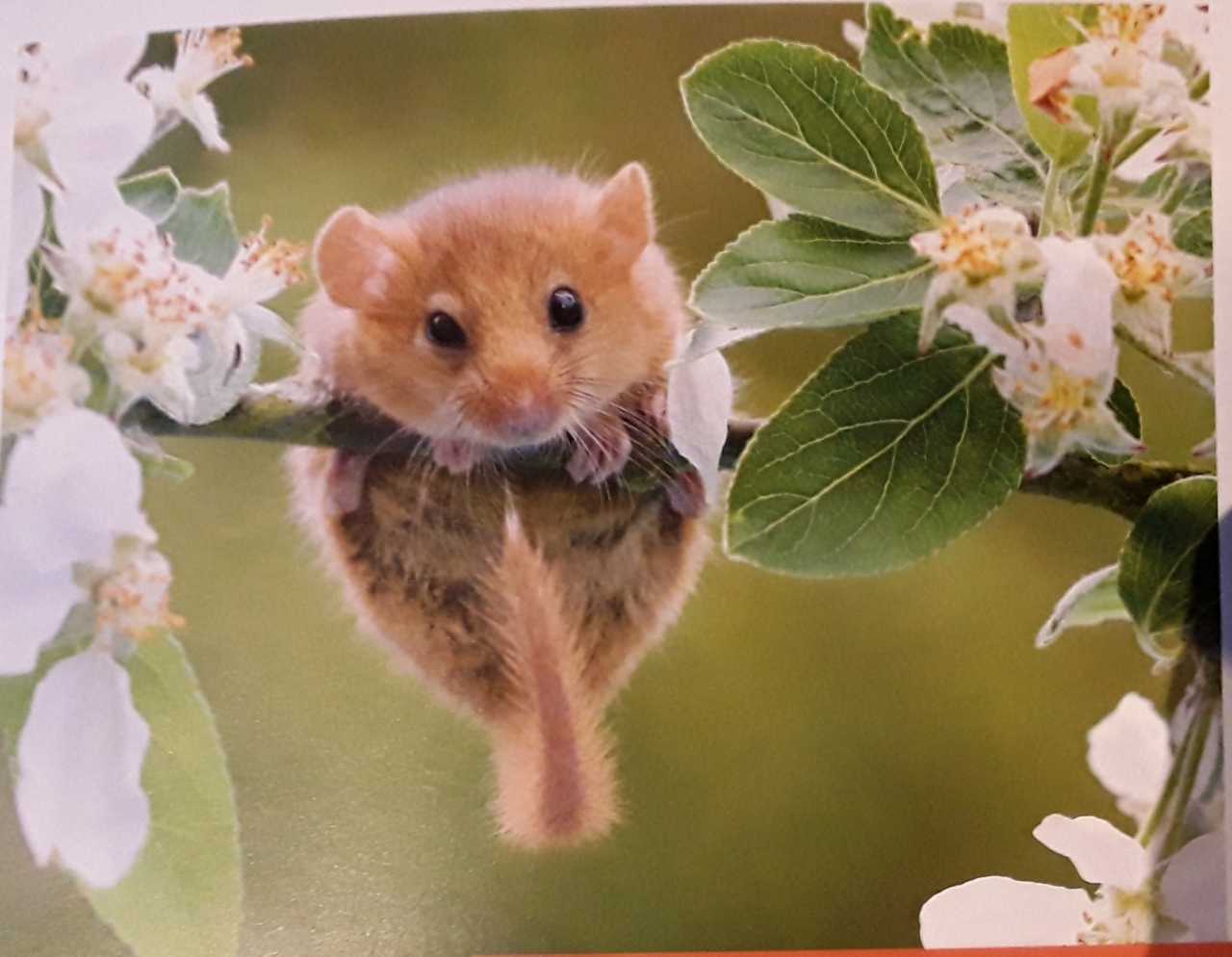| Muscardin sur une branche de pommier ( oeuvre collective merci pour vos talents de naturalistes )
