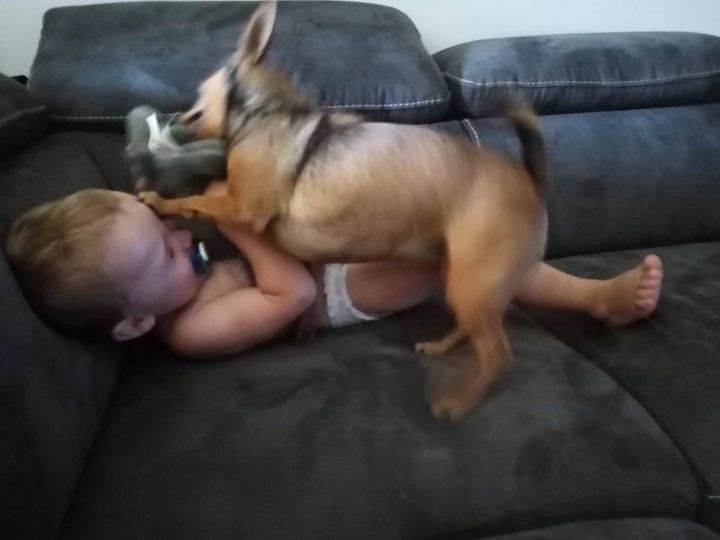 | Dire merci | Et quand bébé se fera pincer le visage, ça sera la faute du chien ![]() |