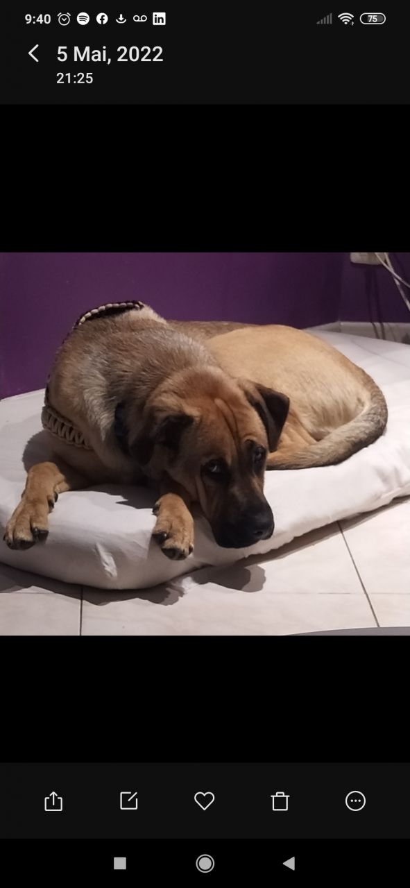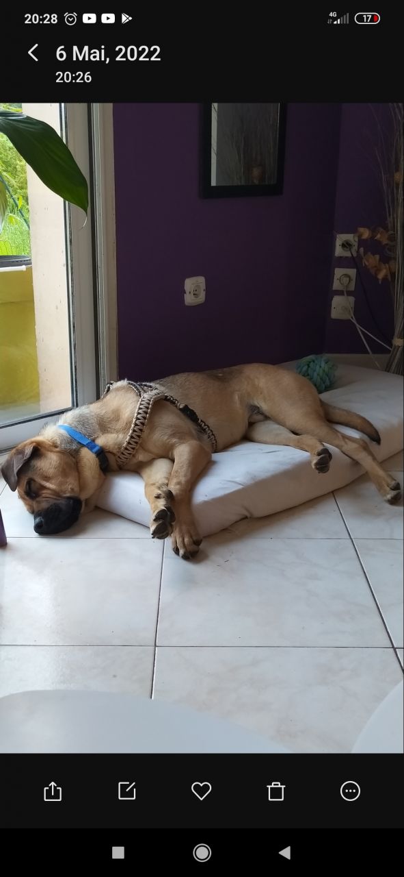 | Dire merci | Oh merci pour les infos sur le 3/3/3 ! Pour l'instant il à l'air de pas trop mal s'adapter. Il est sage tout seul, il prend juste des objets avec lui, il les abîmé pas ni rien mais il les met dans son lit...pour dire ce matin il a piqué l'emballage de la baguette de pain sur mon plan de travail avec la baguette dedans...là il l'a posé à côté de lui sans toucher au pain ni mm à l'emballage... Pour le reste on a passé beaucoup de temps dehors cet apm, du coup il a pu faire ses besoins et moi la olà, on va continuer comme ça! première petite balade et là c'est moi qui ai fait étendard, il a de l'énergie a dépenser mais je peux pas encore le lâcher c'est trop tôt et mon jardin n'est pas clôturé il donne sur le terrain des chevaux...va falloir qu'il prenne une châtaigne à l'occase d'ailleurs... Bref bcp de choses à apprendre pour nous deux... |