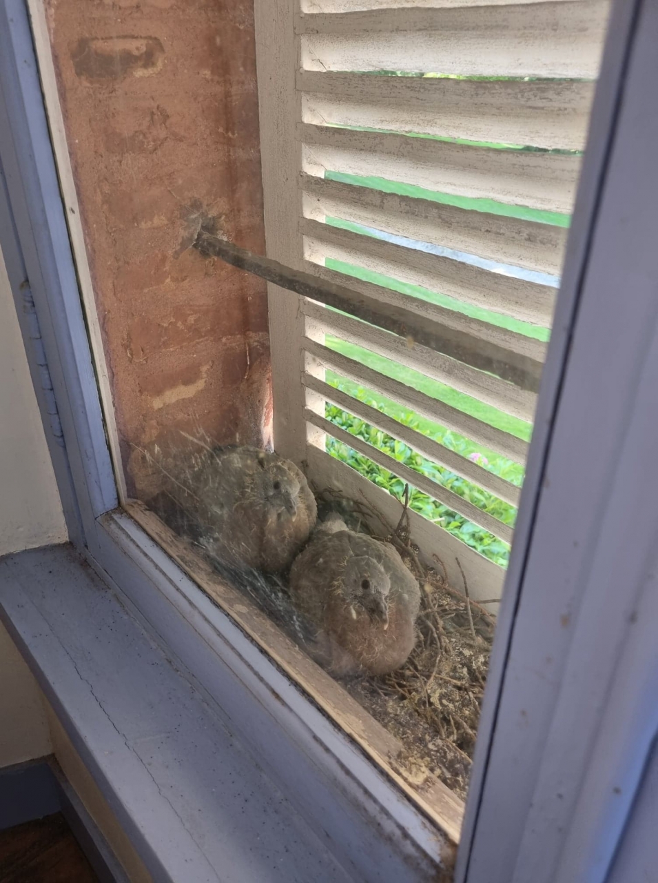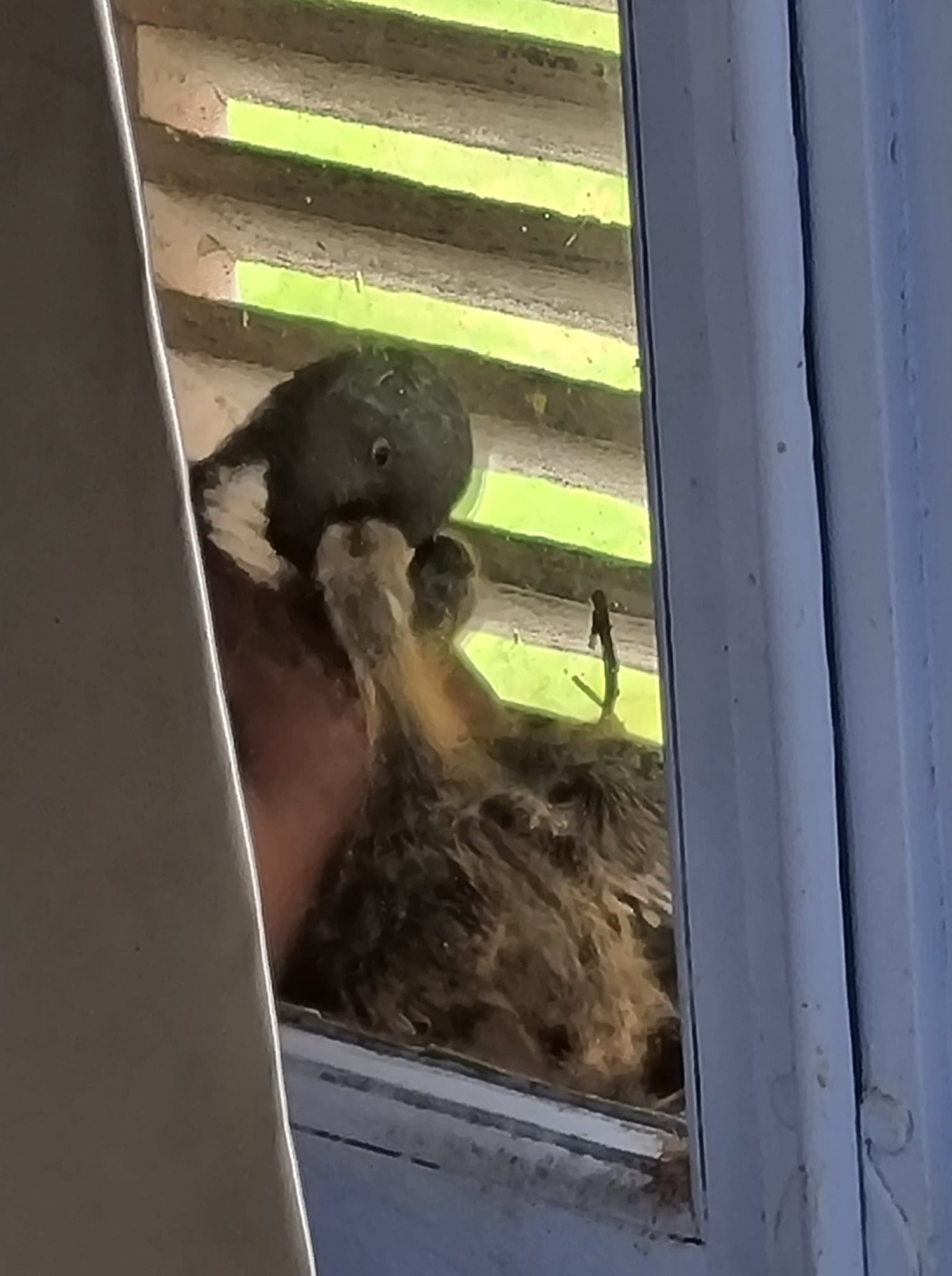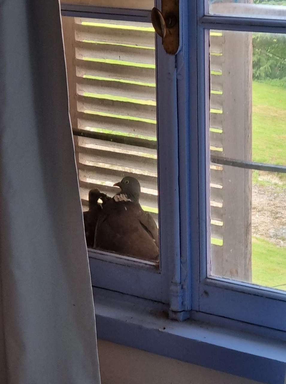 | Dire merci | Il n'y a qu'un volet fermé, il suffit qu'ils s'avancent le long de la fenêtre pour partir. Je n'ai trouvé aucune plume nulle part. Par contre j'ai aussi un couple de faucon crecerelle qui niche , est ce que ça peut être eux les coupables ? |