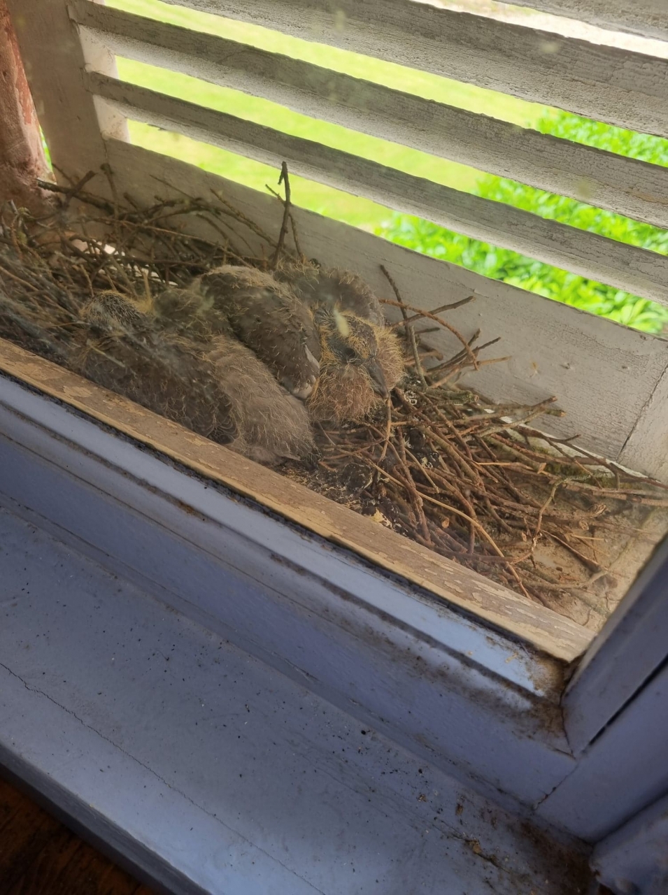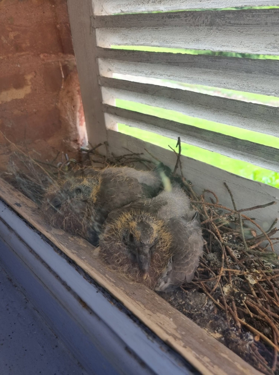 | Dire merci | J’en ai eu deux ici à la maison à hauteur des yeux Ils sont partis très vite Un peu au stade des tiens sur la photo Les parents continuént a s’en occuper après La je viens de faire une hirondelle (partie hier) c’est hallucinant comme ça change de jour en jour En 4/5 jours les plumes de vol ont poussé ! Et tout le duvet parti ! Et oui ils mangeant comme cela les bébés pigeons J’avais eu une tourterelle tombée du nid que j’ai nourrie Le gavage est super délicat avec leur bec fin Quand j’ai compris qu’il suffisait que je fasse un cône avec la main 😂 Quand on les élève nous meme on les garde plus longtemps enfermés que lorsqu’ils sont sauvages et où les parents continuent à les nourrir et s’en occuper 1 a 2 semaines après avoir quitté le nid |