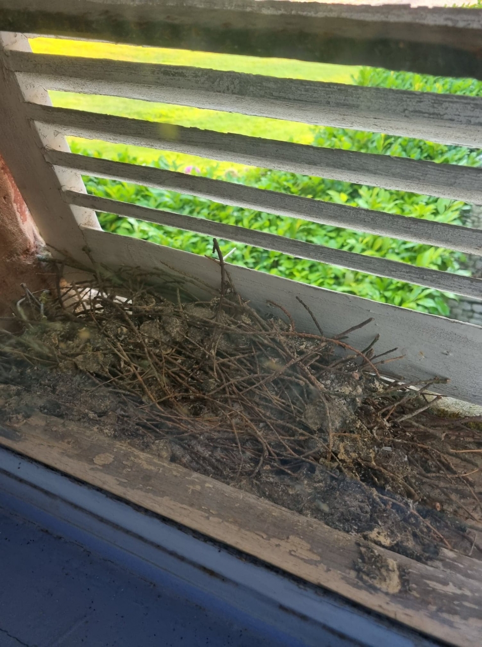 | Dire merci | dejavu ils étaient déjà avancés pour être bouffés par des pies, en général elles s'attaquent aux oisillons et aux œufs. Ils peuvent commencer à explorer à cet âge (où est l'accès pour sortir ?), en revanche si tu n'en as trouvé aucun ailleurs dehors ou au sol c'est qu'ils ont été mangés. Essaie d'observer les parents, si tu les vois aller toujours dans d'autres zones nouvelles mais de façon répétitive ou si tu entends piailler. |