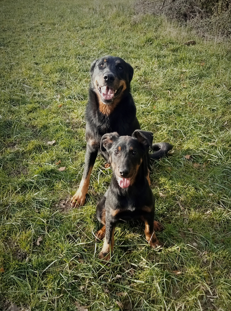 | Dire merci | Bonjour à tous, merci pour toutes vos réponses. Je vais essayer de répondre aux questions et de préciser certains points. Pourquoi cette race ? C'est notre 4eme beauceron. Il se trouve qu'en août dernier nous avons eu l'opportunité d'avoir un chiot qui s'avère être l'arrière petite fille de notre 3eme beauceron (malheureusement parti il y a 15j à 12ans). Nous avions placé une chienne chez un éleveur bovin. Donc Première erreur, une chienne de ferme. Les chiots pouvaient aller un peu partout, dormaient dans les pattes des chevaux. Je me demande s'il ne s'est passé un truc car elle s'est déjà bloquée le dos plusieurs fois, bien sûr après avoir fait de belles cabrioles, pas au repos hein. Deuxième erreur, la mère en a eu 16 .. 6 ont été donné au propriétaire du mâle pour n'en garder que 10. Mais elle n'est pas une super mère, pas top en éducation. Troisième erreur, on a dû choisir la caïd de la portée, celle qui ecrabouille les autres pour arriver à la gamelle avant .... Bref, ça c'est d'où elle vient. |