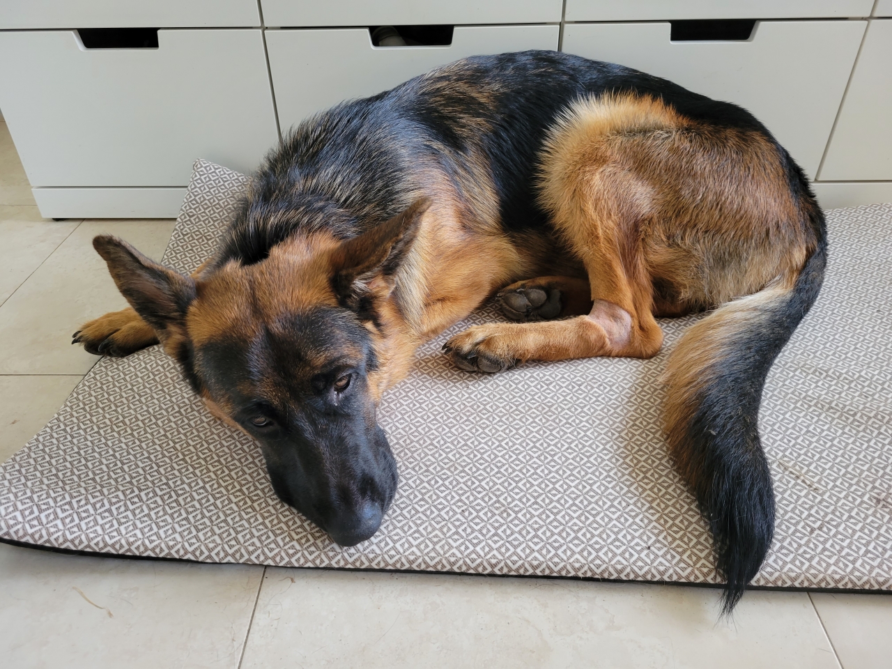 | Dire merci | Pour donner des nouvelles de mo n p'tit loup. Ça va toujours mieux même s'il reste un peu fatigué. La cortisone ce n'est pas évident à supporter et j'en sais quelque chose. Après il garde un crainte quand on lui prend le cou, il devait vraiment avoir ma mais ça commence à aller mieux. Il joue moins, mais c'est peut être du aussi à la chaleur. Mercredi prochain pds pour vérifier l'évolution de la crp et adapter le traitement. On est en vacances alors on s'occupe de lui un maximum, il es vraiment chouette comme chien. |