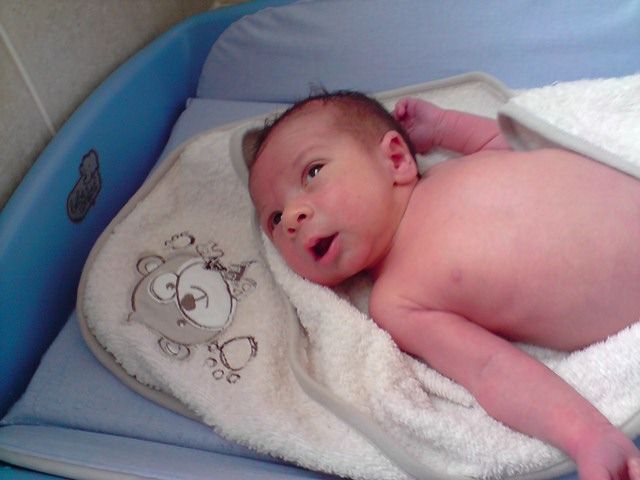 pauvre loulou... il est même pas trop potelé, il est tout en longueur ! Il a pris 6.5 cm le premier mois, et la semaine prochaine je saurais de combien encore il a grandit durant le deuxième. En terme de poids, il doit être aux alentours des 5kg3-4, taille approximative pas loin d'un soixantaine de cm, si pas la soixantaine. Il va pas tarder à déborder du coussin de la table à langer
