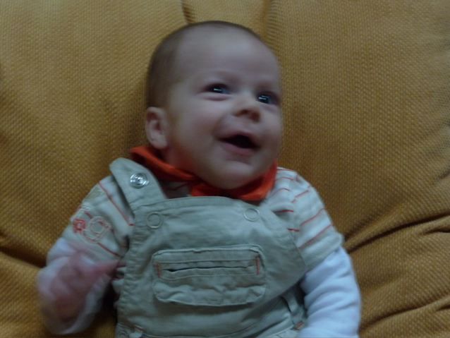 | ho les filles , je suis contenteeeee , tout a lheure jetais en train de donne le bain a anthony et javais dit a mon mari de rester a coté car javais des trucs a lui dire ( il venait de rentrer du boulot) et que comme ca il est un peu avec tinou...bref , j etais en train de parler a mon cheri tout en "frottent" le ventre a anthony , et la on entent un ho ho ho un peu bizzard ( pas comme quand il gazouille ) alors on arrete de parler on le regarde et la il recommence mais bcp lus rapidement et la bouche grand ouverte d un sourire. et oui cetait son premier eclat de rire !!! et on etait tous les 3 ca ma fait plaisir ca ma emu , et en + il a 2 mois aujourdhui alors ca fait une belle surprise . A-D-O-R-A-B-L-EEEEEEEEEE |