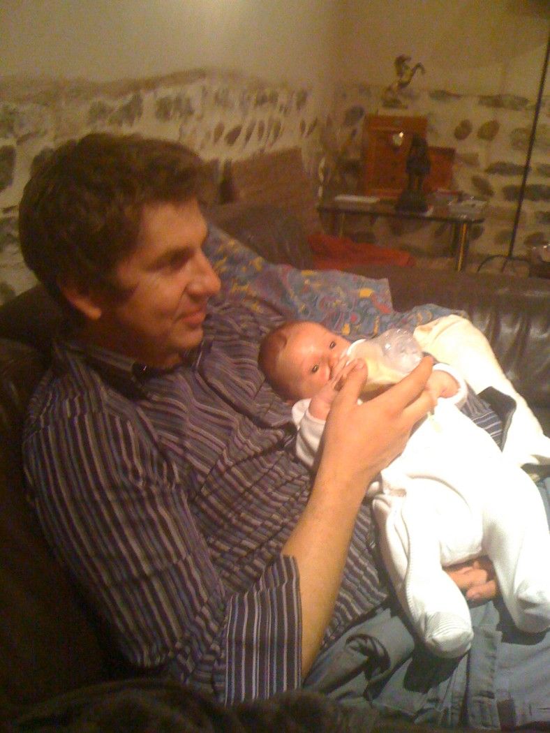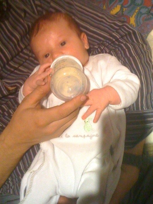 | Dire merci | bon essaye concluant, il prend super le biberon!!avec son papa qui est ravi!c'est sa surprise en rentrant du travail!! un bébé parfait, il dort bien, pleure pas trop, prend bien le néné et le bib! une tite photo, bon papa est pas tres presentable tout pourrit pas rasé, et bientot les cheveux à bozo le clown!! ![]() |