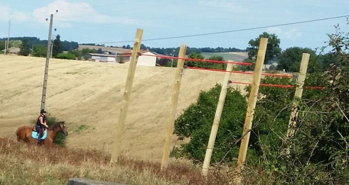 | Dire merci | Pour la bache : Des gros plots ou des tas de sable s'il y a un peu de vent. Pour les branches basse, je n'ai pas encore fait en pâture. Dans la carrière, j'utilise un angle et je profite de la hauteur des poteaux de clôture. |